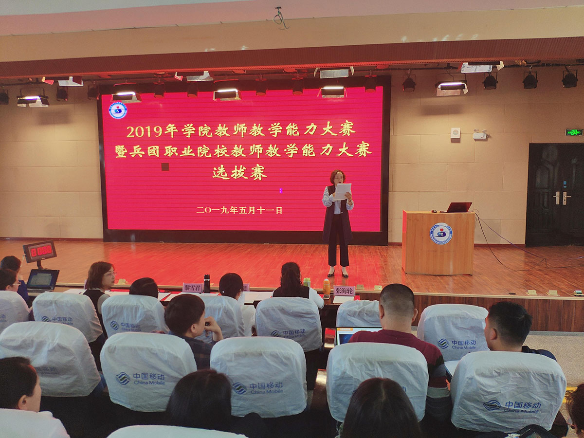 为全面贯彻党的教育方针,落实立德树人根本任务,培养适应新时代具有现代教学理念和教学技能的优秀教师,提升学院教师教学能力和专业水平,5月11日,在新综合楼三楼阶梯教室举行了学院2019年教师教学能力比赛暨兵团职业院校教师教学能力大赛选拔赛。科研处处长张海轮主持开幕式,评委组成员、参赛教师及团队成员参加了开幕式。