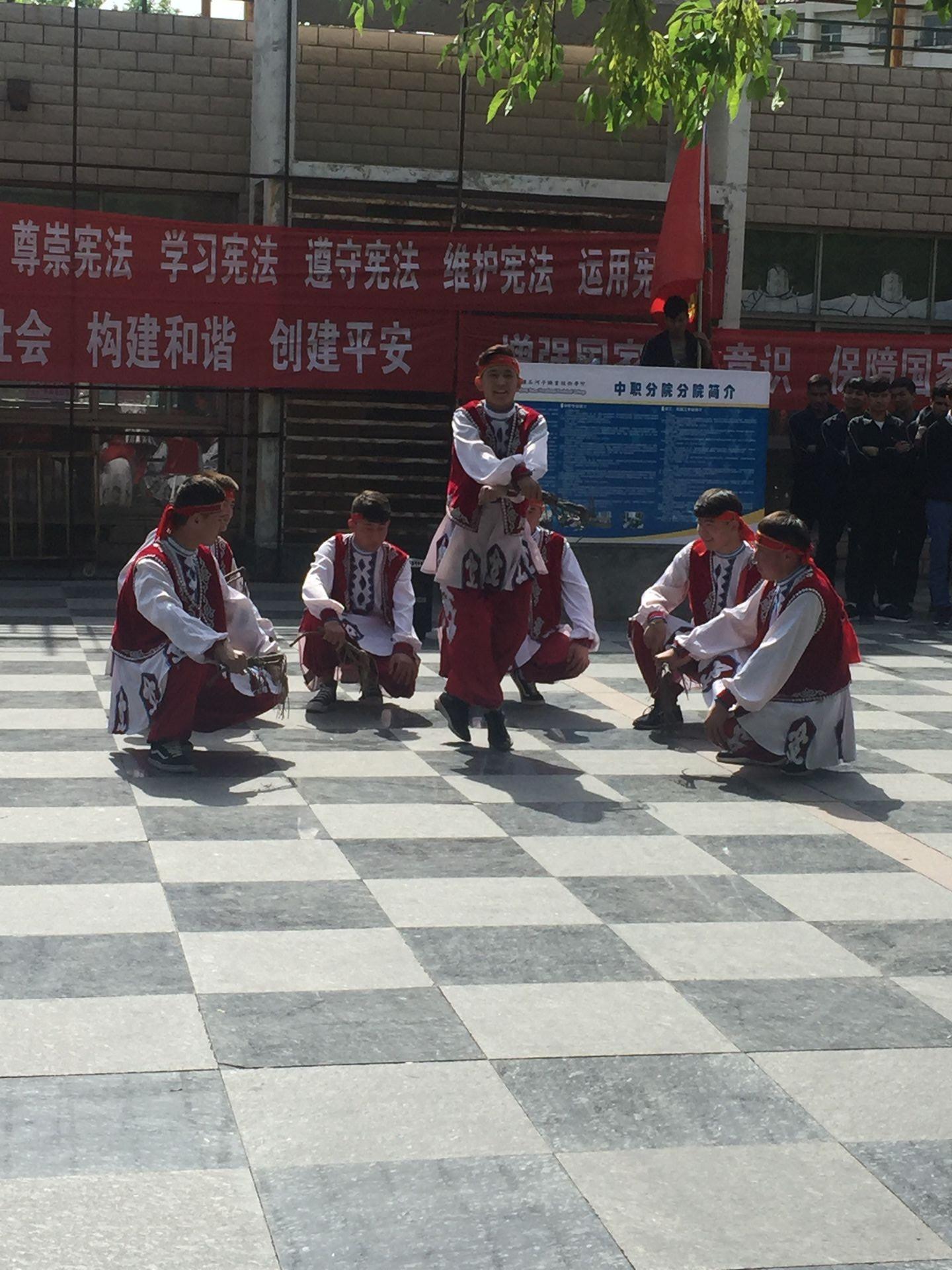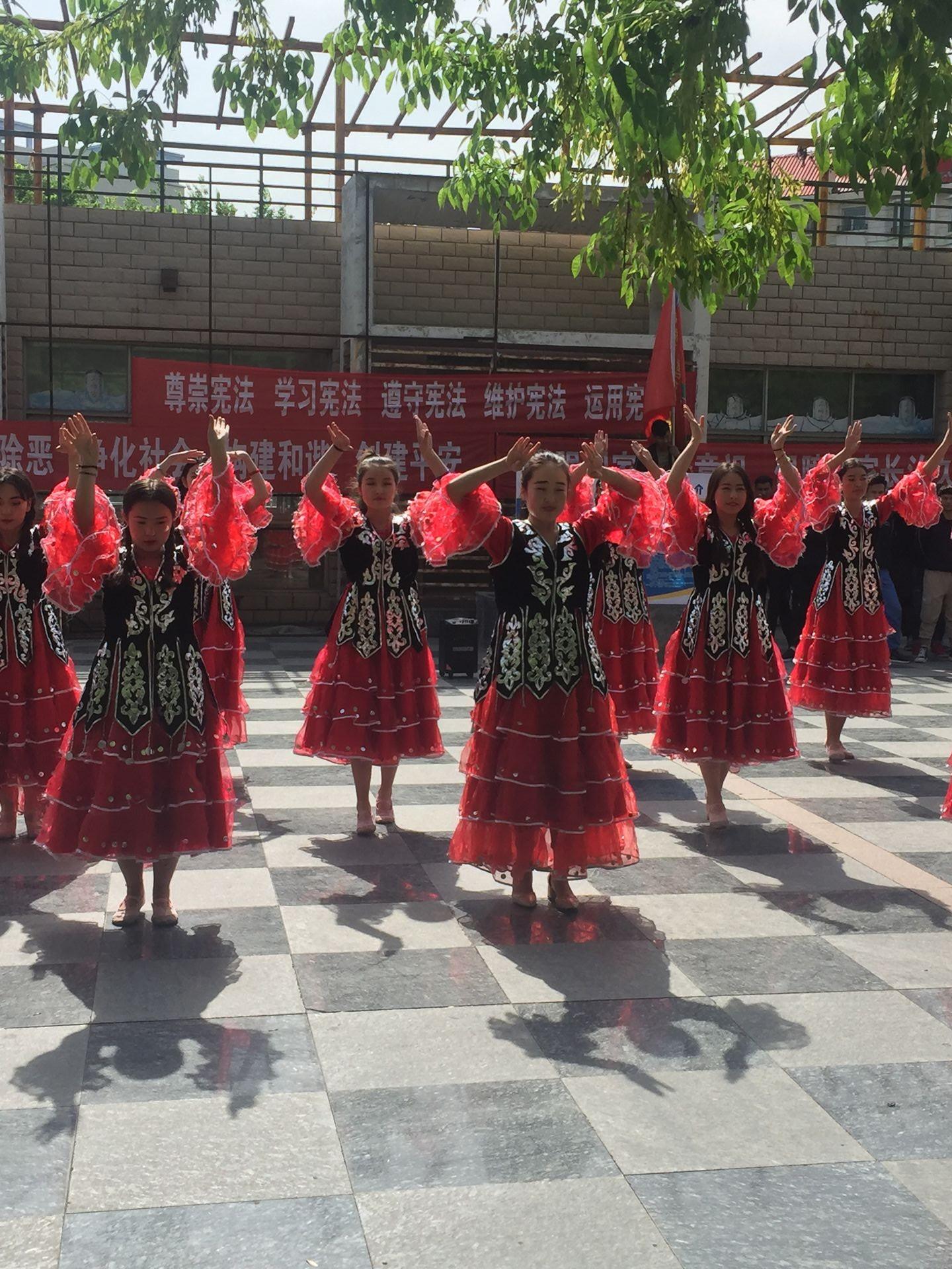 12日上午10点,中职分院民族班200多名学生在分院领导、老师的带领下,来到四十小区和社区居民一起开展“红歌进社区 职业教育广宣传”专题宣传活动。在活动现场,20烹饪班、20电气班、20汽修班同学们表演了大合唱《没有共产党就没有新中国》和《团结就是力量》,艾依沙力、努扎丹、依力等18名同学表演了民族舞蹈《沙玛舞》,吾麦尔、艾力西尔、努尔买买提3名同学表演了吉他弹唱《心愿》,阿合依尔克同学表演了独唱《可爱的一朵玫瑰花》,所有节目都受到小区居民的热烈欢迎,纷纷称赞石河子职业技术学院学生多才多艺,学院职业教育搞的好。活动中,师生们情绪高涨,分院领导组织得力,确保了此次活动圆满成功。