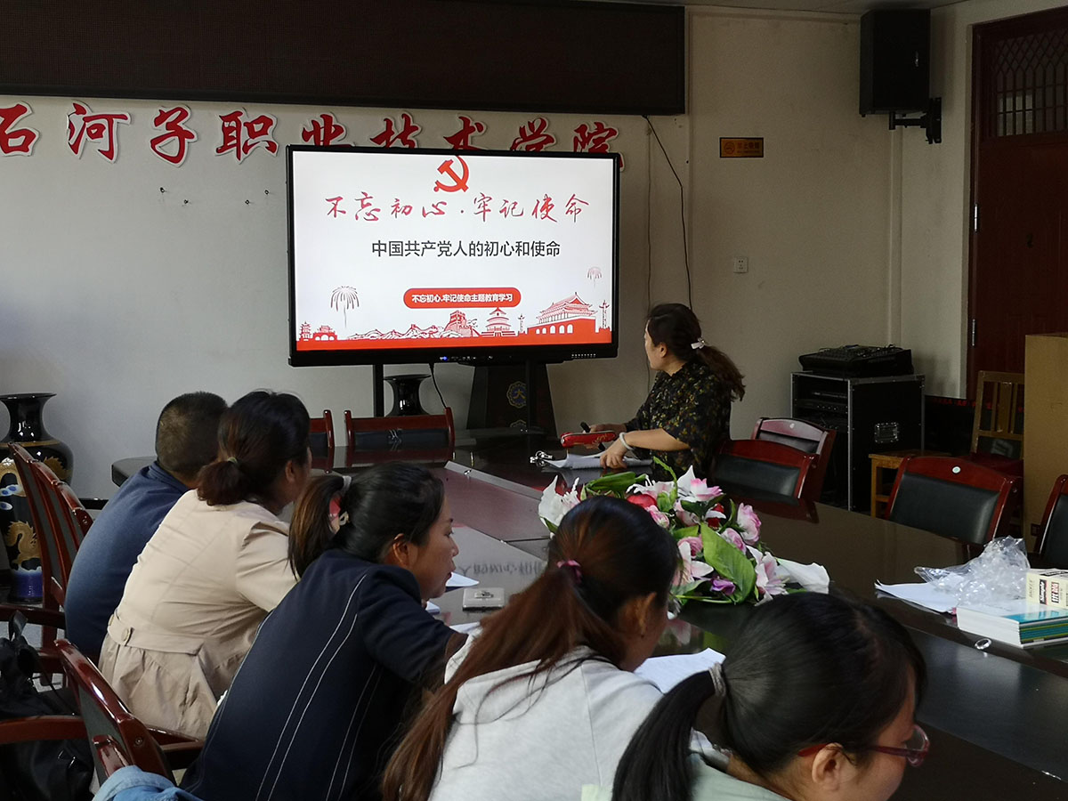 随后,总支书记马彩梅给全体党员上了一节以“不忘初心、牢记使命”为主题的党课,党课回顾了历史年代中国共产党人的初心和使命,要求分院党员教师不断增强四个意识,坚定四个自信,做到两个维护,为实现伟大梦想而不懈努力!