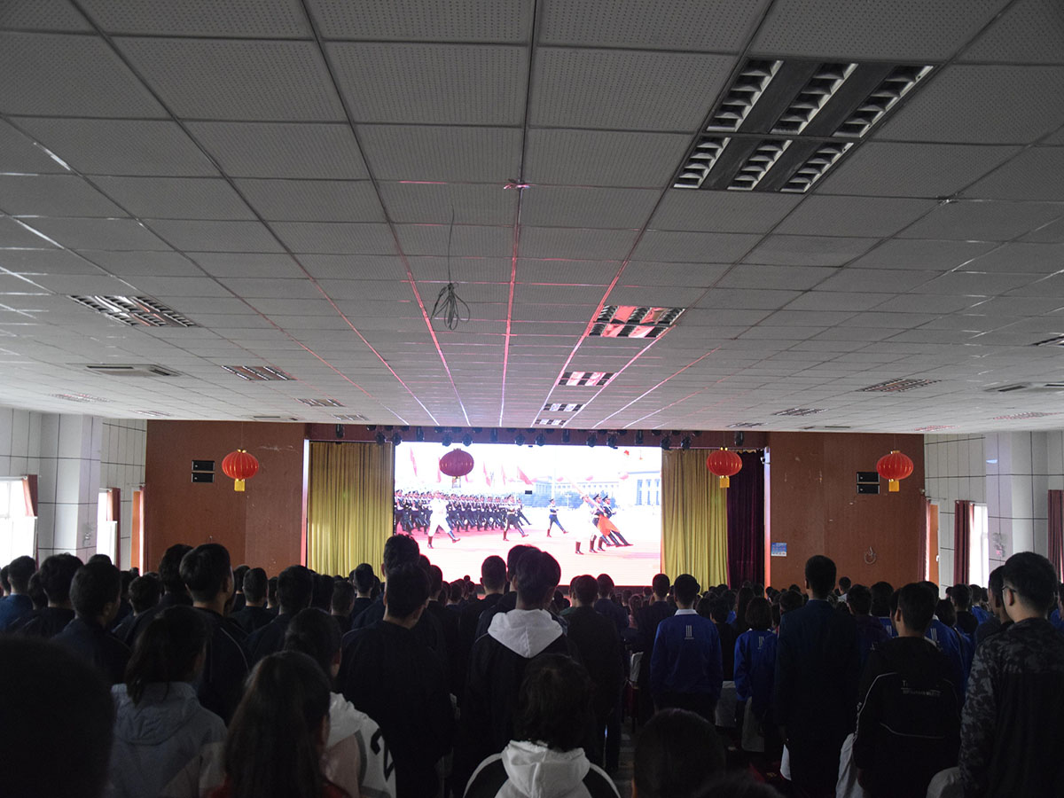 庆祝中华人民共和国成立70周年大会充分展示了在中国共产党的领导下,取得举世瞩目的伟大成就,展示了我们从贫穷走向富庶,从站起来、富起来到强起来的辉煌历程。在收看庆祝新中国成立70周年大会、阅兵式、群众游行盛况过程中,师生们无比自豪、无比自信、无比坚定。因为实践和事实证明了,在今天,没有任何力量能够撼动我们伟大祖国的地位,没有任何力量能够阻挡中国人民和中华民族的前进步伐。中国的昨天已经写在人类的史册上,中国的今天正在亿万人民手中创造,中国的明天必将更加美好。