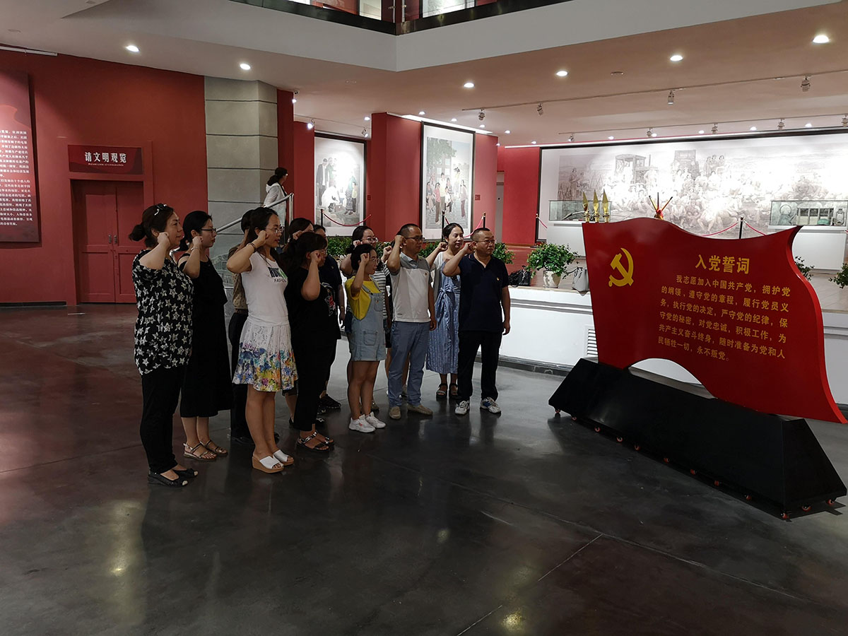 此次活动分院党总支前往红山1958文旅小镇参观学习,活动的第一项内容是重温入党誓词,全体党员面向党旗庄严宣誓,再一次接受思想的洗礼、党性的磨练,进而唤醒奋斗的意识。活动的第二项内容是参观红山1958文旅小镇文化艺术中心,参观“大美新疆·军垦华章——铁岭新疆兵团题材美术作品展”,开展以传承和弘扬兵团精神为主题的爱国主义教育活动,工作人员讲解的一个个军垦故事深深打动了每一位党员。参观完,分院全体党员在小镇广场开展了丰富多彩的拓展活动,各支部成员先后进行了“滚车轮”、“转呼啦圈”、徒步等活动,炎炎烈日下,大家丝毫没有降低热情,面对这些富有挑战、寓意深刻的团队合作拓展训练项目,全体群策群力、克服困难,没人退缩和放弃,每个人都凭着顽强的精神和坚韧的毅力,全身心投入。活动第三项内容,组织全体党员参加知识竞赛,内容覆盖党的知识、十九大报告、党员纪律处分条例等,充分调动党员干部学习的自觉性和积极性,不仅提升了党建理论知识水平,增加广大党员党性修养和政治自觉,也进一步加强了党员率先垂范、服务发展的意识。