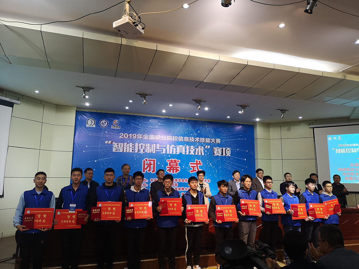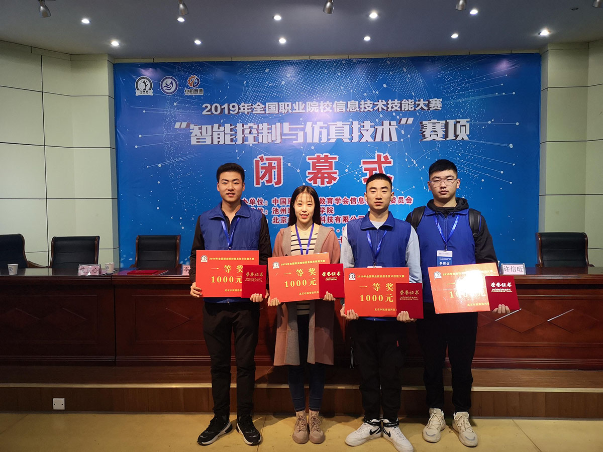 本次比赛共有来自全国15个省市自治区和计划单列市的37所学校的111名选手和74名指导教师参加,beat365唯一官方网站机械电气工程分院共派出两名指导教师和三名参赛队员。在分院顾建疆院长、时夕然老师的精心指导下,任新杰、高士孑、吴熙三位同学在本次赛项中荣获全国职业院校信息技术技能大赛“智能控制与仿真技术”赛项团体一等奖的好成绩,同时顾建疆院长、时夕然老师荣获“优秀指导教师”称号。