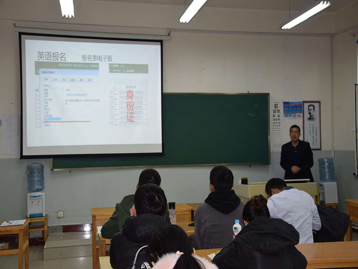 会议的第二部分内容由教办高民老师进行培训。主要内容为计算机、英语三四级报名、成绩审查以及后续的补考工作。通过培训,让班主任知道报名时间、费用、考试时间、所需材料等问题,这也能够使班主任更好地对学生进行讲解,减少报名出错率。根据目前的新形势新政策,清考环节已取消,也因此每一次的考试机会都变得尤为重要,也让班主任切实了解这一工作的重要性。