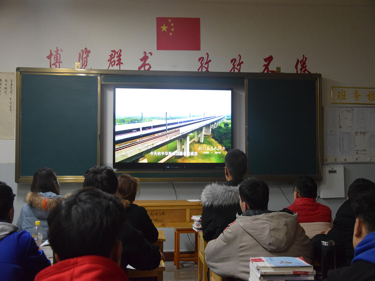 该纪录片以习近平新时代中国特色社会主义思想为指导,以70年来我党代领全国人民进行社会主义革命、从建设改革中取得的辉煌成就和宝贵经验作为主线,客观反映历史进程,用生动的故事表达,还原各时期的重大历史事件,也反映了千千万万中国人民日常生活的巨大变迁,具有深刻的教育意义和社会意义,引发了学生强烈的反响,更深刻的理解了习近平总书记为新时代青年人的讲话,明白了自己肩上的责任,也真真切切的感受到什么叫做没有共产党就没有新中国,没有改革开放就没有社会主义的飞速发展!