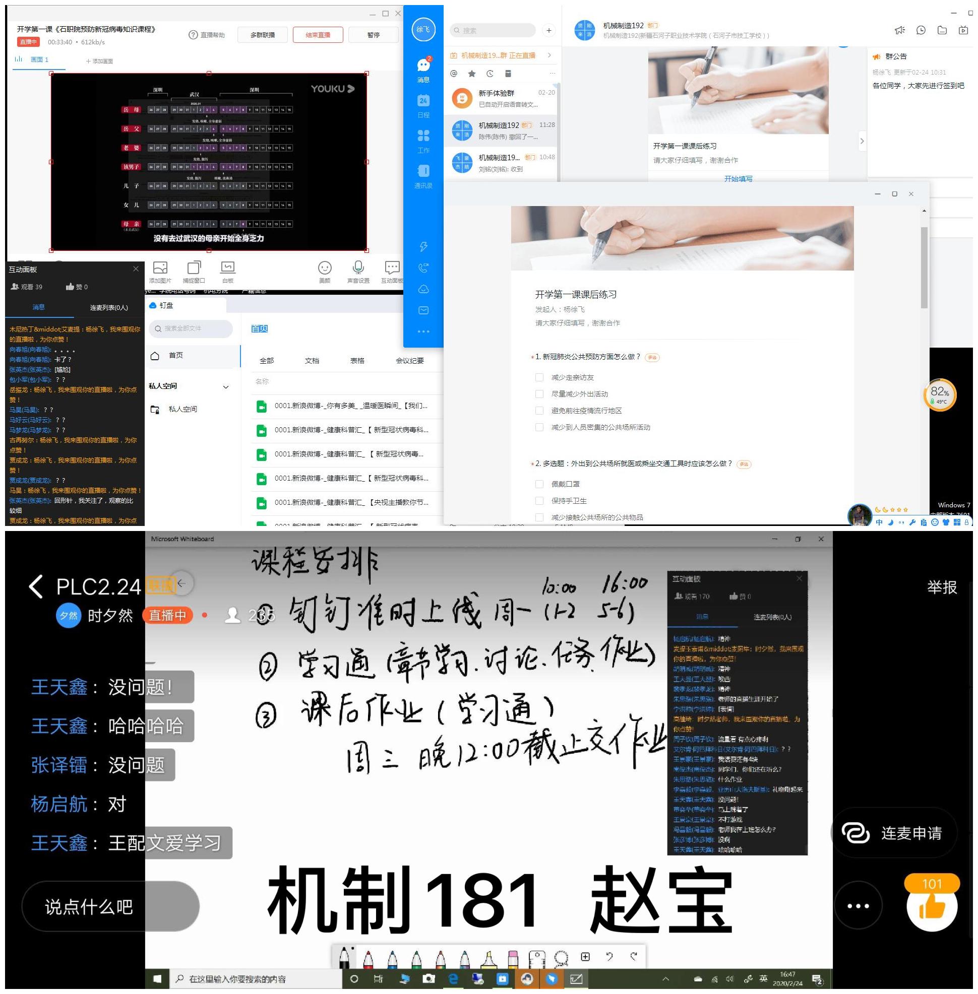 2月24日,本应该是beat365唯一官方网站开学上课的第一天,然而受到新冠肺炎疫情的影响,本该入校上课的学子们只能被迫宅在家中,而对于原本教学时间就紧张的职业院校来说无疑是被打乱了教学计划。但是正如疫情无法阻挡春天临近的脚步一样,它更不能阻碍石职院机械电气工程分院千余名师生相聚在“云端课堂”。当天,机械电气工程分院近30名教师参与,开授了19门课程,组织了40个班级近1500名学生参与线上教学,共同在“云端课堂”完成了新学期的“开学第一课”。