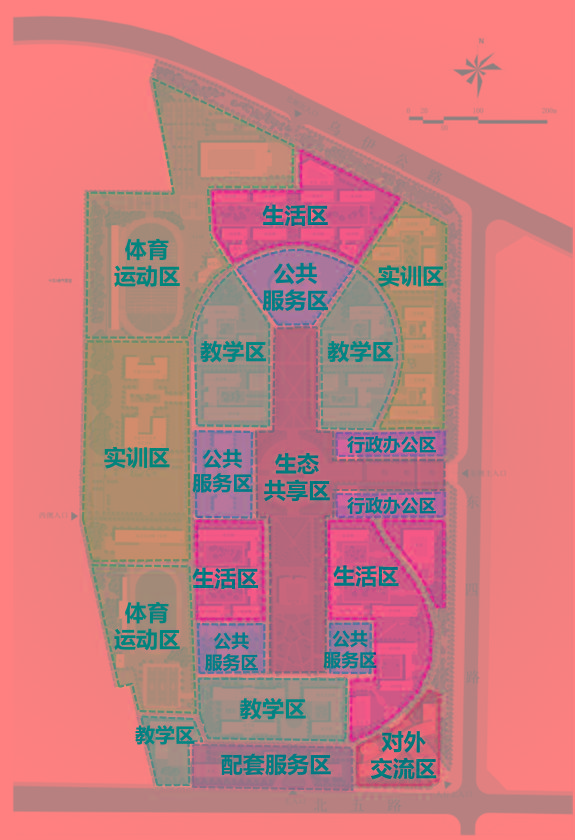 目前已完成场地红线定位放线工作,完成二期开工协调准备,确定施工围挡位置、施工通道位置,冲洗台两处,确定了临时施工、临时监理、临时造价单位,完成用地边界定位打桩,并在边界处布置彩旗。水、电、暖与天富集团公司对接完毕,确定由东三北六路入口接入学院用地范围内。