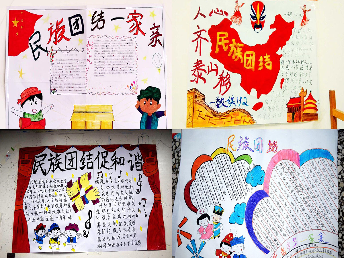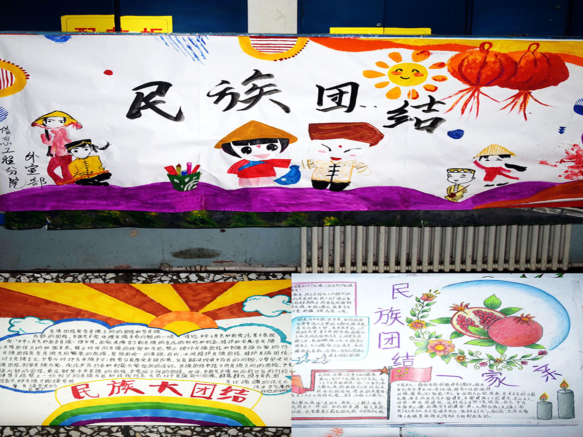 此次宣传教育主题活动分为四部分进行,首先通过各班张贴宣传标语的方式,让在校师生了解到民族团结进步、“去极端化”等基本常识,加大对在校师生的民族团结进步宣传教育的知晓率。其次通过班级召开“民族团结”教育主题班会,让同学们了解到党和国家民族宗教政策以及相关的法律法规,并且将这些更好地融入到校园文化建设中。同学们也采用展板、手抄报、黑板报等形式,营造浓厚的民族团结氛围。随后我们举办了民族团结共抗疫情“国语大赛”,全面普及了国家通用语言文字,激发了同学们对国家通用语言文字的兴趣与热情,从而让同学们基本掌握了国家通用语言文字。也为社会发展需要奠定了强有力的基础。