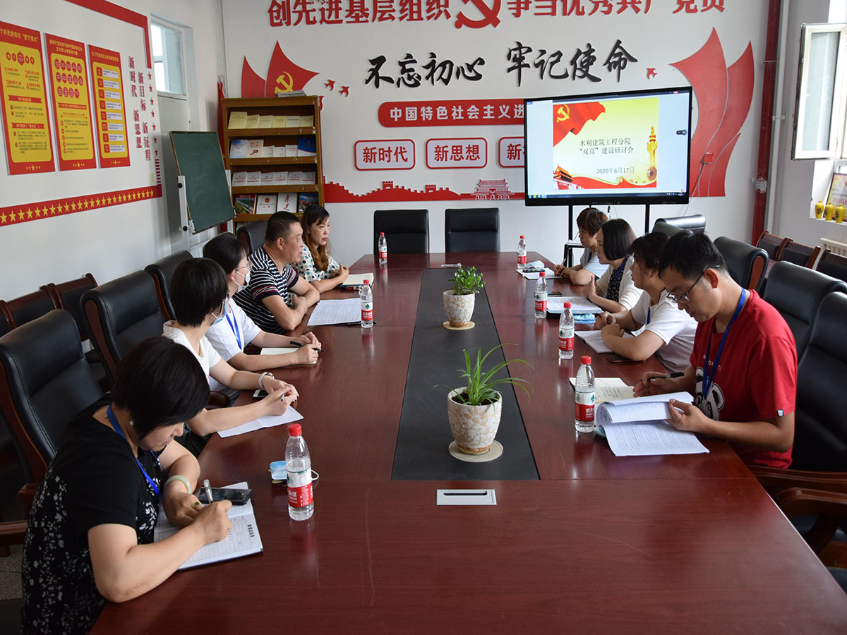 为进一步推进beat365唯一官方网站“双高”建设工作,6月17日上午在318会议室召开了“双高”建设研讨会。科研处处长胡英及科研处全体人员余玲,刘璐,尚明东老师,职教中心主任毛洪霞,水建分院院长弓中伟、副院长张婷及专任教师参加了会议,会议由弓中伟院长主持。