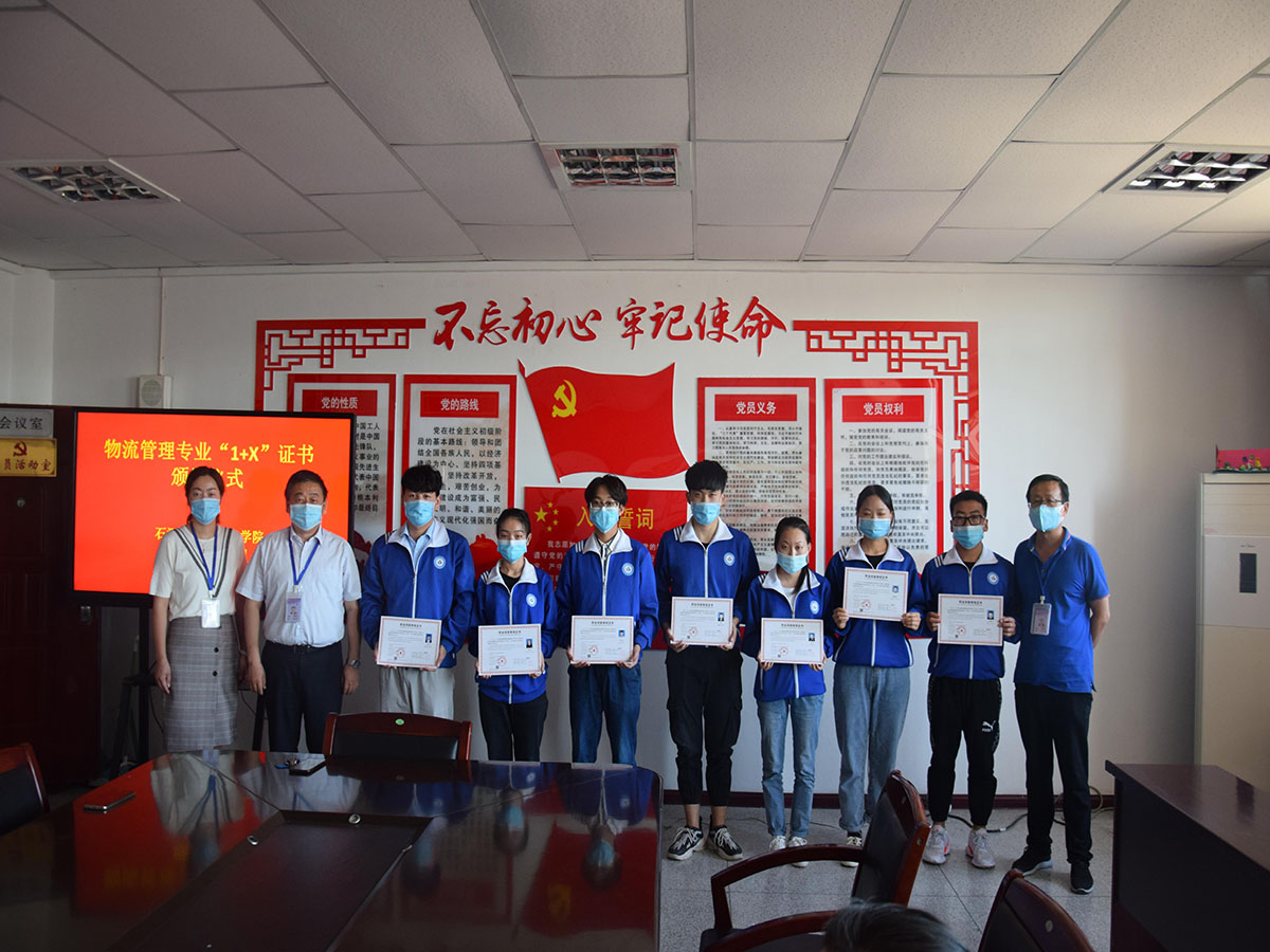 旅游与经济管理分院作为全国首批“1+X”证书考点,2019年12月7日组织50名学生参加考试,其中46名学生获得全国“1+X”物流管理职业技能等级证书(中级)。