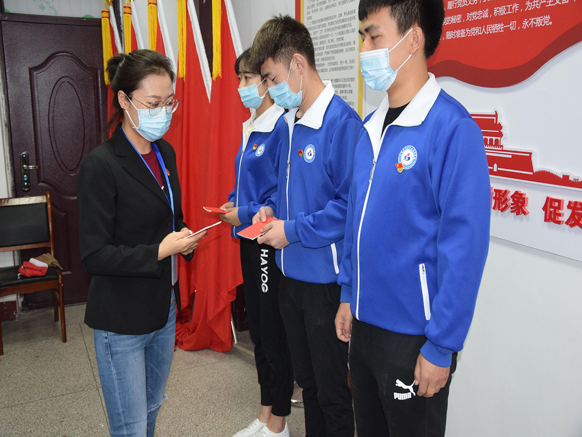 活动共有四项内容,首先,由轻纺化工分院第二党支部书记武亮老师带领预备党员进行入党宣誓。在庄严的誓词当中,预备党员为这份荣耀感到光荣和自豪,同时也明确了肩负的责任和使命担当。紧接着,分院李晓华副院长、姜黎老师为预备党员佩戴党徽,石妍老师给预备党员赠送了《中国共产党党章》。最后,武亮老师带领大家学习了《党章》,通过对《党章》的学习,党员们深切感受到了党的政治理论熏陶。大家纷纷表示今后一定要认真学习,领会、把握、贯彻党的路线、方针、政策,认真执行党的宗旨,把学习、遵守党章落实到工作、生活实际中去,从而更加自觉地接受党章约束,在不断的学习中提高自己的能力,争做合格党员,努力实现社区建设与时俱进、和谐发展。
