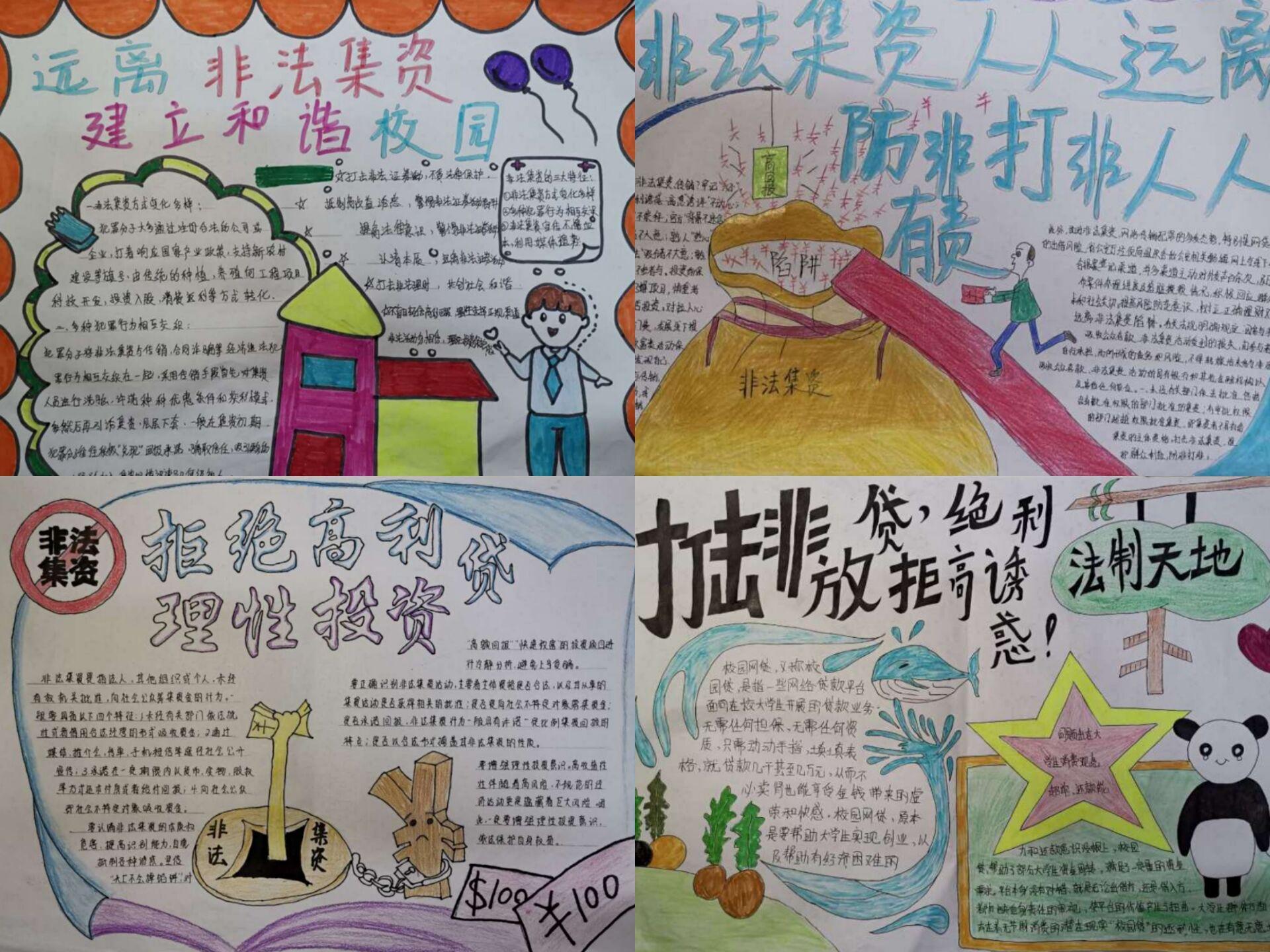 本次活动在分院范围内展开,30名教师,1093名学生共同参加了此次活动。分院充分利用展板、手抄报、制作与转发推送宣传视频等多种方式进行广泛宣传,并对手抄报进行评比,宣传内容生动形象,使同学们深刻感受到了非法集资所带来的危害,使“守住钱袋子·护好幸福家”深入到了同学们的心间,营造出了浓厚的宣传氛围。