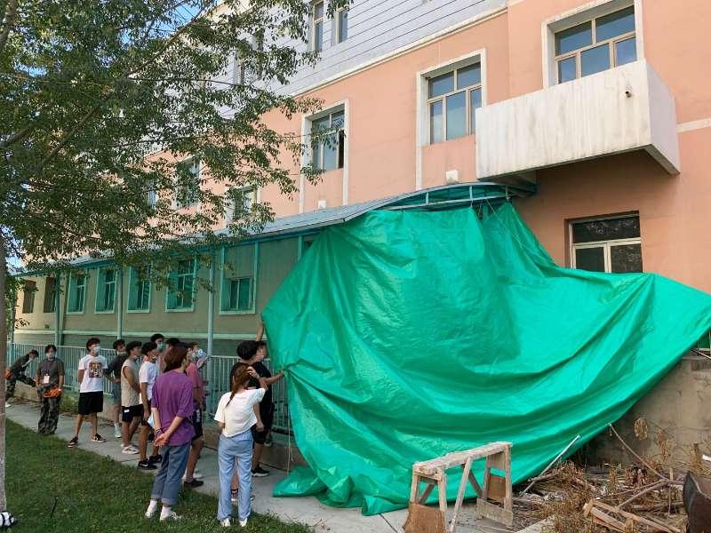 7月下旬的高温烈日天气,只是行走也会一身汗水,轻工分院住校教师面对苦与累没有退缩,越是在艰苦面前越是考验党员、教师的担当与责任,师生们顶着烈日,将300余张课桌全部搬入实训楼地下通道,并对外围加固防雨布,保证学校资产安全。