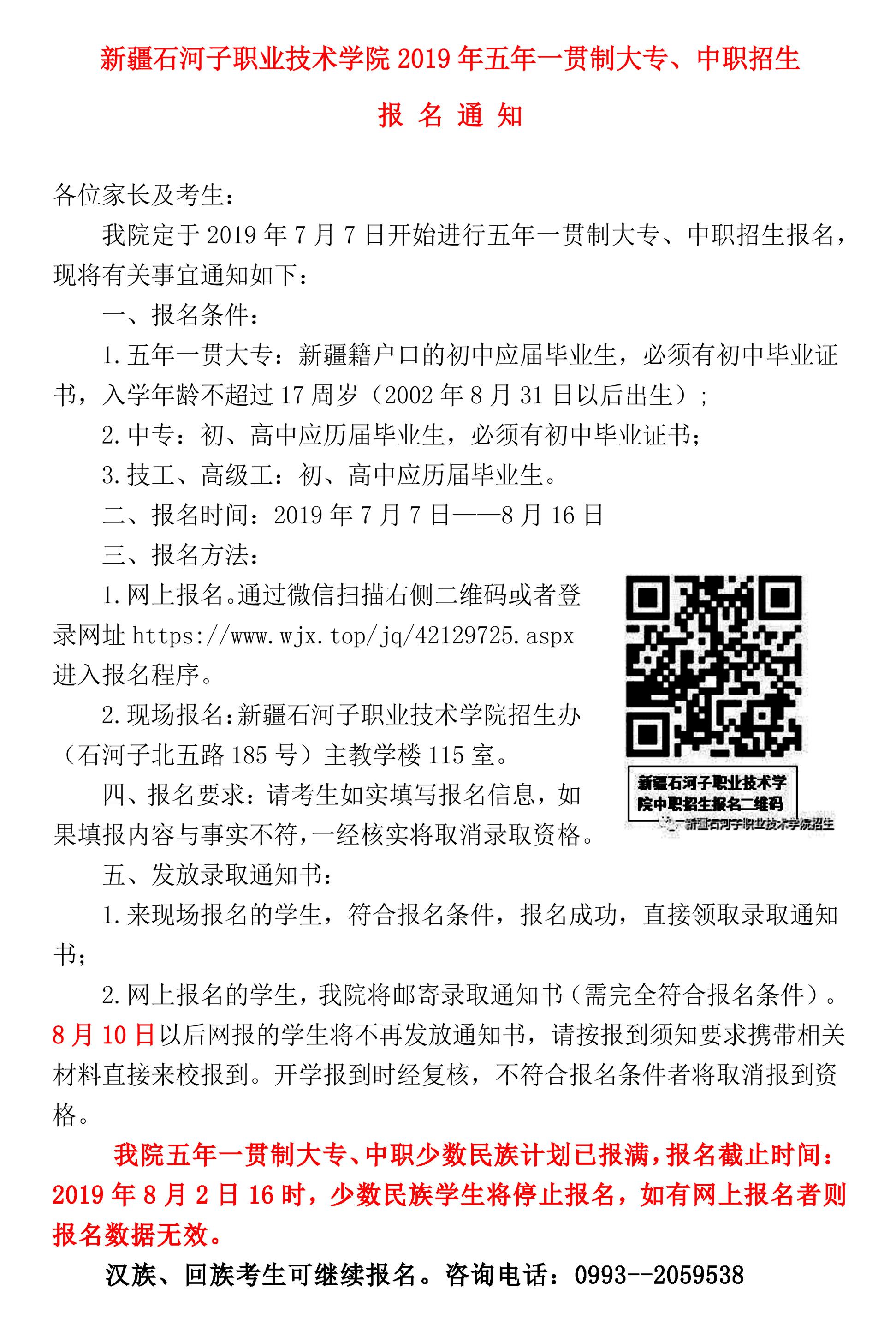 2019年五年一贯制大专、中职招生报名通知