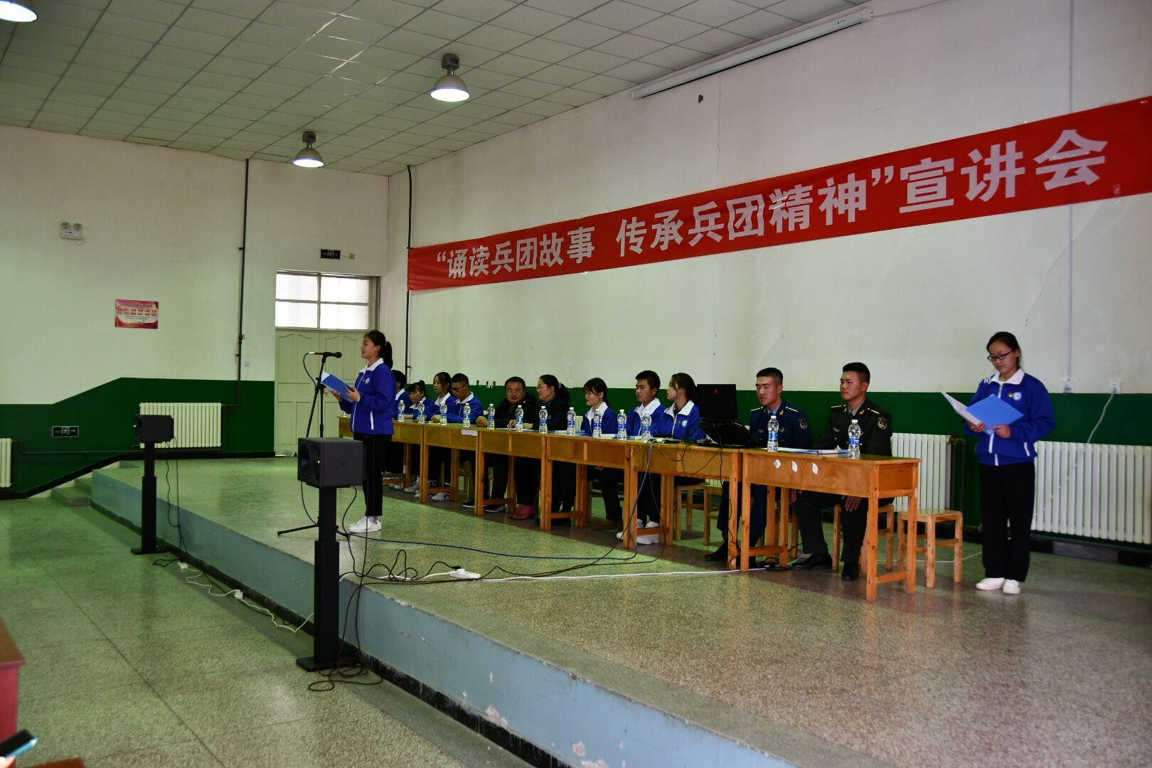为进一步引导学院师生深刻学习和认识中国共产党团结带领中国人民为中国的独立、自由、民主、富强和中华民族的伟大复兴而不懈奋斗的光辉历史,深入贯彻习近平总书记关于弘扬红色文化、传承红色基因的系列讲话精神,扎实落实《新时代爱国主义教育实施纲要》,展示学院师生弘扬红色文化传承红色基因的精神风貌,在总策划纪委周赞梅书记和策划图书馆馆长陈建红老师的带领下,于2020年10月30日下午五点在北校区举办了“诵读兵团故事,传承兵团精神”宣讲会。中职分院的近300名学生和教师代表聆听了宣讲。宣讲团共来自学院各分院的11个班级的11名学生讲述了闪烁着红色光芒的兵团故事。