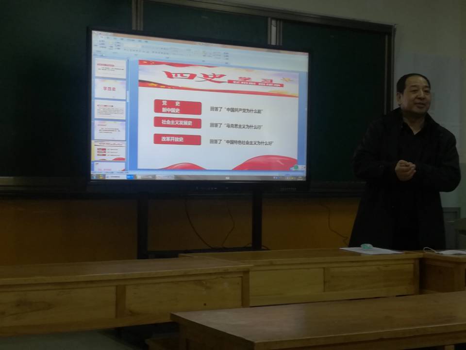 为深入学习贯彻落实习近平总书记关于党史、新中国史、改革开放史、社会主义发展史学习重要讲话和重要指示精神,切实有效推进学院“开学第一课”教育要求,3月5日下午,机电分院邀请学院思政部石巨文老师在机电楼406为分院教师进行培训讲座,机电分院辛延波书记主持活动。