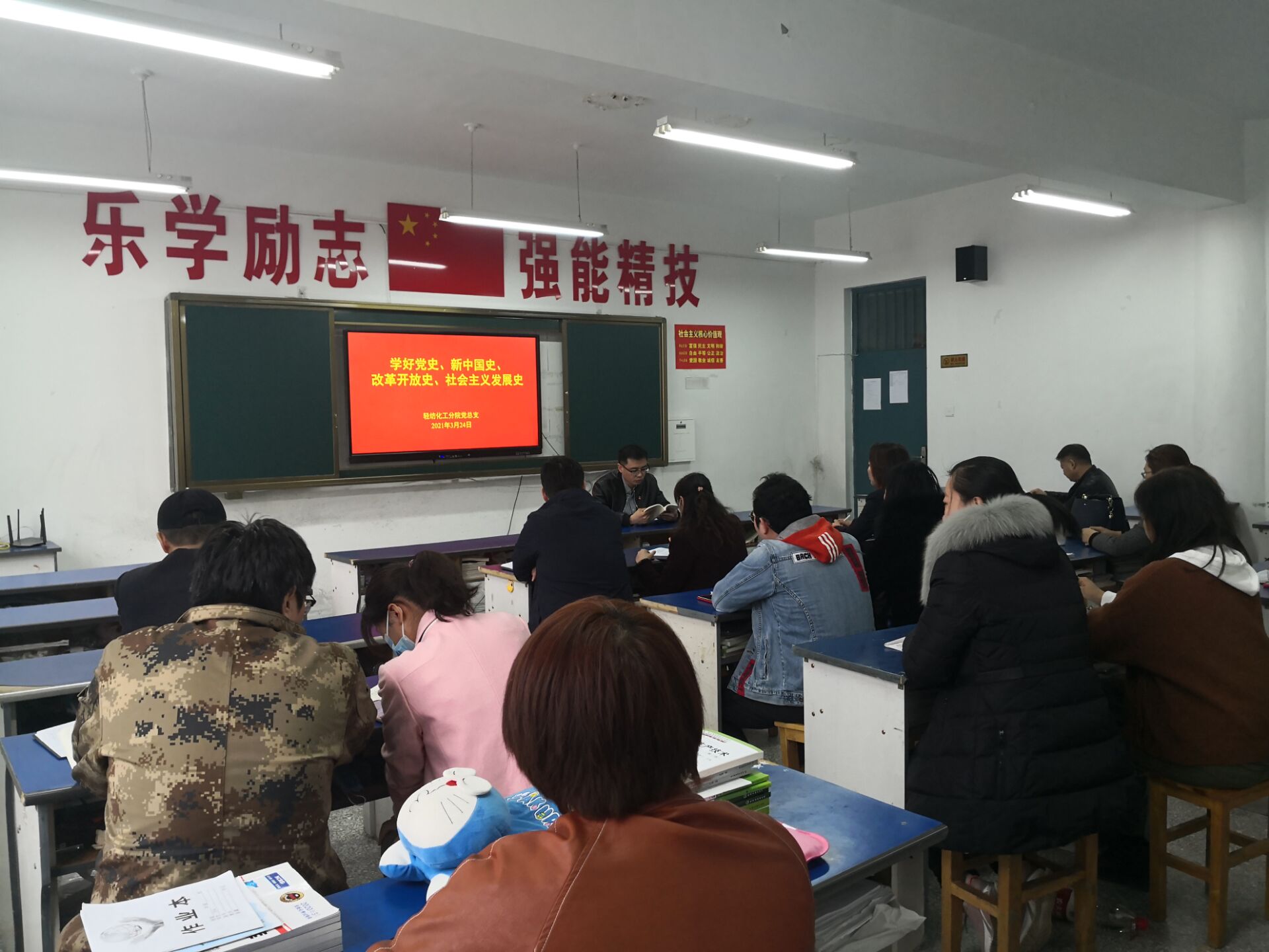 2021年3月24日,为贯彻学院党委工作部署,进一步学习“四史”,轻纺化工分院党总支在后楼412开展“四史”主题集中学习活动,分院全体党员教师参与学习。