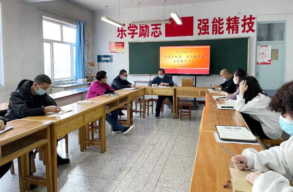 为了进一步强化党员教师理想信念教育,加强师德师风建设,增强党员教师做好立德树人工作的责任感和使命感,2021年3月25日,信息工程分院党总支在信息楼303教室开展“四史育桃李,正风锻师德”主题教育学习活动,活动由信息分院党总支书记徐通主持,分院党总支12名党员参加了此次活动。