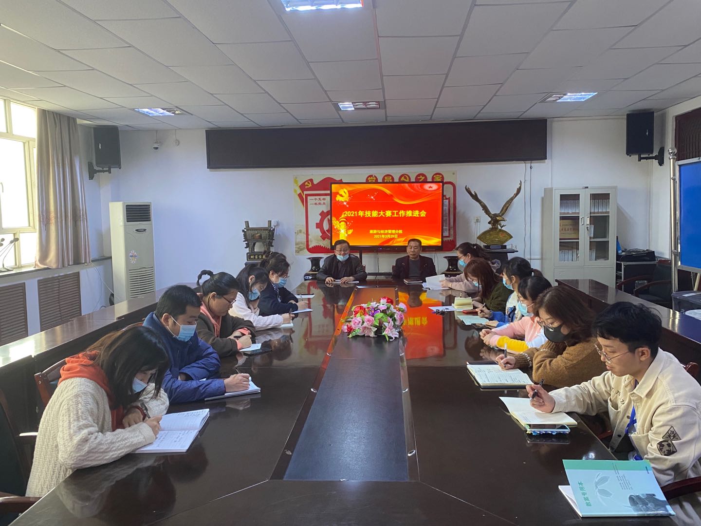 2021年自治区职业院校技能大赛暨全国职业院校技能大赛选拔赛启动在即,为全面做好大赛各项工作,3月29日下午,旅游与经济管理分院召开技能大赛工作推进会。会议由分院院长栗劲松主持,分院书记党博文出席会议并讲话,分院副院长曾娅丽、参赛教研室主任、大赛项目负责人及全体指导教师等二十余人参加会议。
