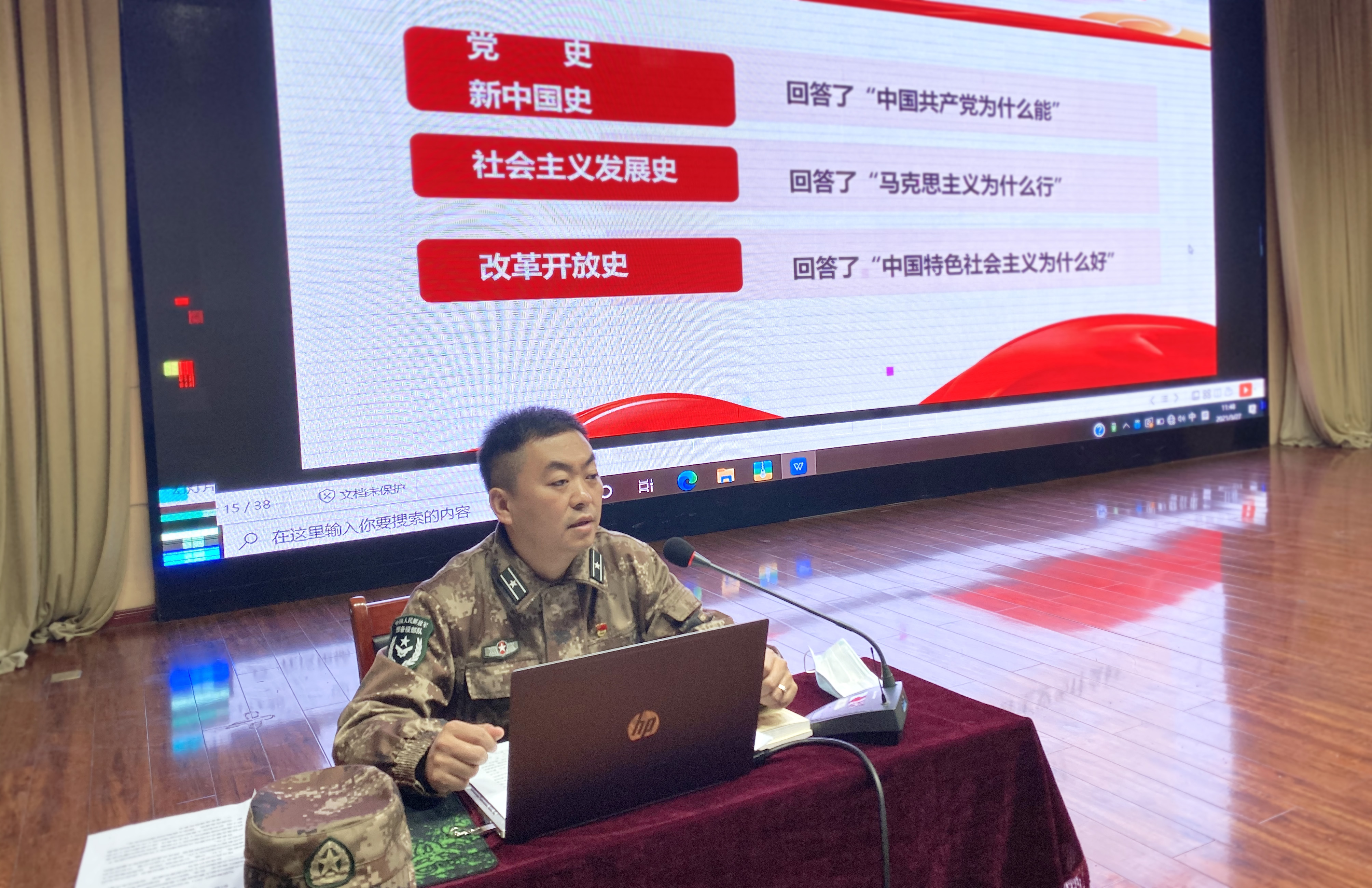 2021年3月27日早上,士官学院责人房明老师利用周末时间,在综合楼四楼阶教组织所有教官及290名士官生开展了四史教育活动。会上房明老师重点强调了开展“四史”学习的重要性和必要性,讲述了我们党的由来及我军的由来,也讲述了我军光荣传统、抗日战争和解放战争中的英雄事迹。此次学习,同学们能够认真听讲,积极互动,深刻认识到了红色政权来的之不易、新中国的来之不易,深刻理解了中国共产党为什么“能”。总结历史经验,把握历史规律,充分发扬我军不怕死、不怕苦的光荣传统;知史爱党,知史爱国,知史爱军,勇挑新时代军人的使命是此次学习同学们的心中感触。