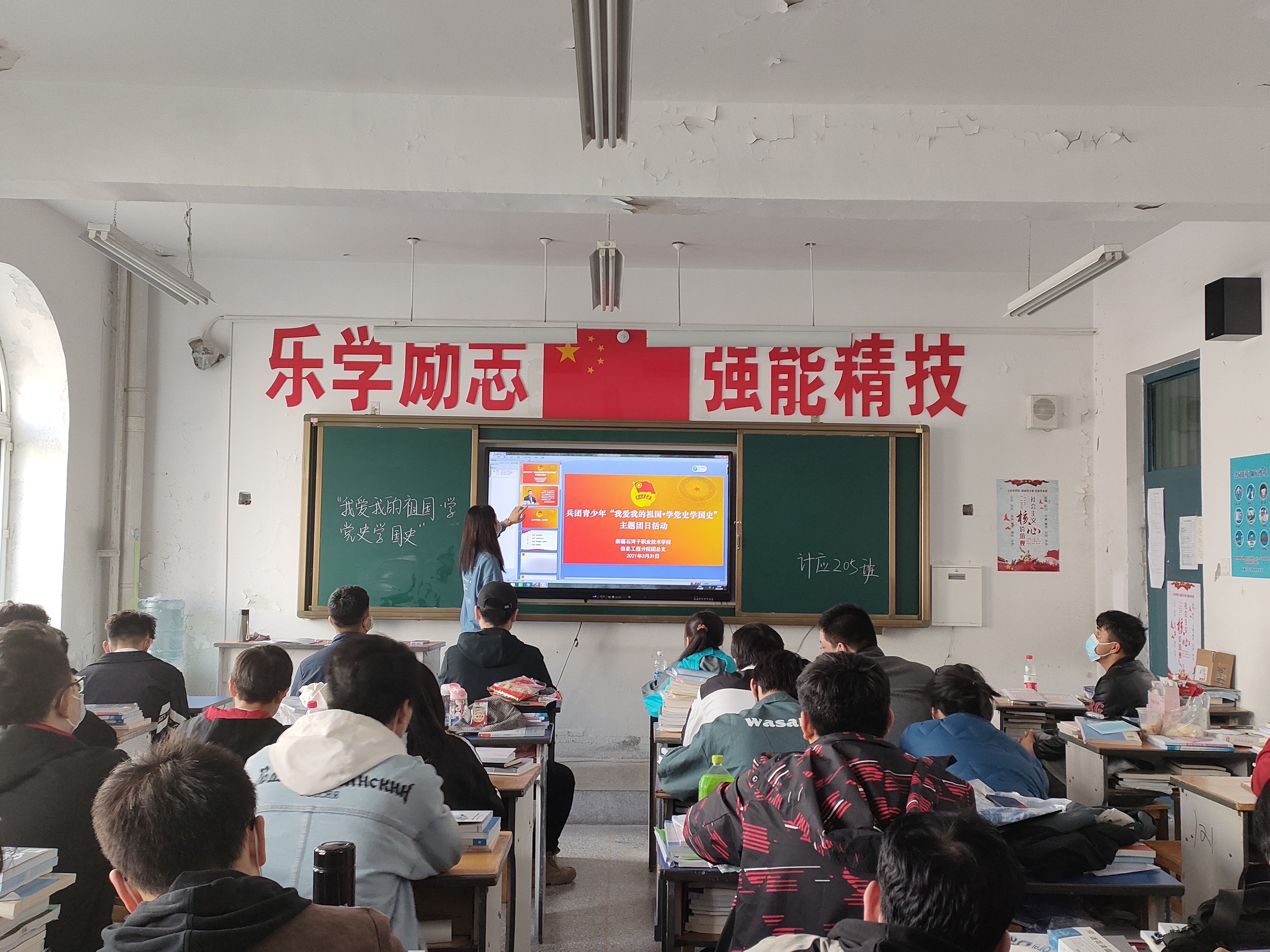 本次活动各班团支部书记带领团员们学习了党的发展历程及习近平总书记在党史学习教育动员大会上的重要讲话精神,带领学习了甘祖昌龚全珍夫妇和焦裕禄精神的故事,组织观看了《革命理想大于天》《焦裕禄精神》《英特纳雄耐尔一定要实现》等视频。同时利用课余时间组织开展了以“我爱我的祖国·学党史学国史”为主题的学习交流会,分享了各自的学习心得,交流了学习党史的经验和方法,加深同学们对共产党历史的了解。