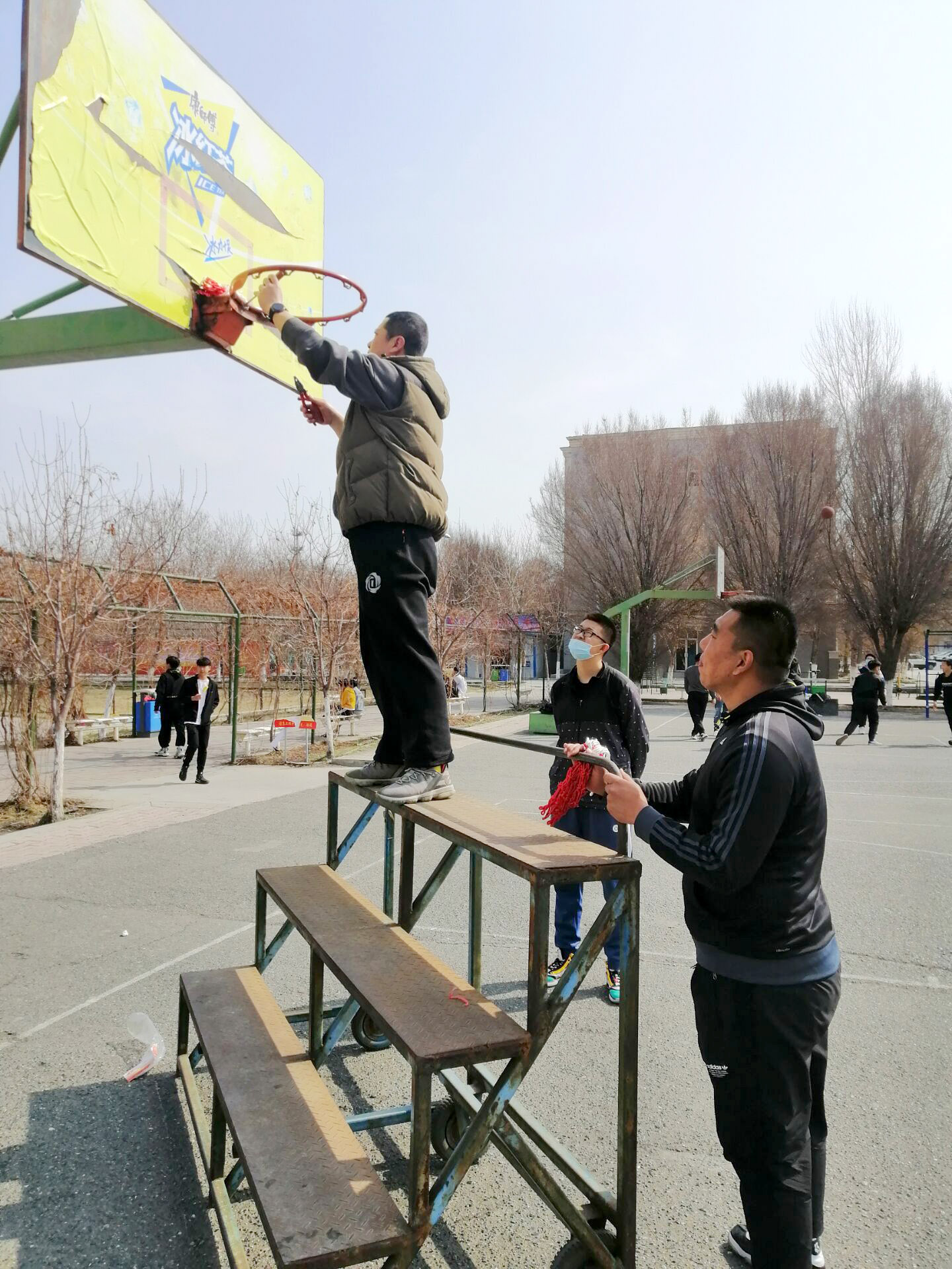 随着天气逐渐变暖,户外活动的同学也越来越多,但有些体育设施出现破损需要维护,如羽毛球场地羽毛球立柱损坏、羽毛球网缺失、篮球架的篮框损坏、足球门没有挂网,这些破损的体育设施影响和制约着同学们的锻炼热情。在学院领导的大力支持下,4月6日至4月7日,学院社科部和后勤管理服务中心以及中职分院体育教研室的老师们利用课余时间对羽毛球场地的羽毛球立柱、篮球框等体育设施进行了修复,羽毛球立柱、篮球框、足球门都挂上了新网。