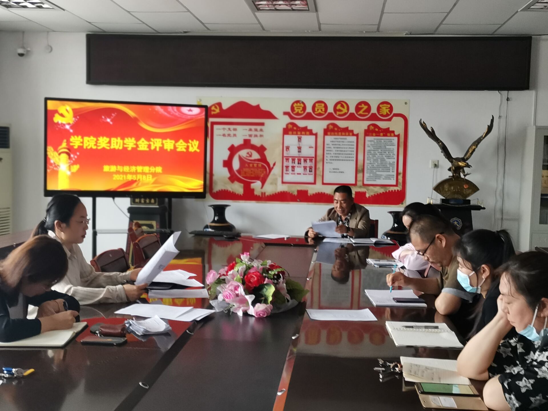 为倡导优良学风,树立榜样力量,确保学院奖助学金的评选在分院更加公平、公正、公开,2021年5月8日下午,旅游与经济管理分院在教学楼主楼前三楼会议室召开了2020-2021学年春季学院奖助学金评审会议。此次参加评审会的人员有分院党博文书记、曾娅丽副院长以及经贸分院全体教职工。