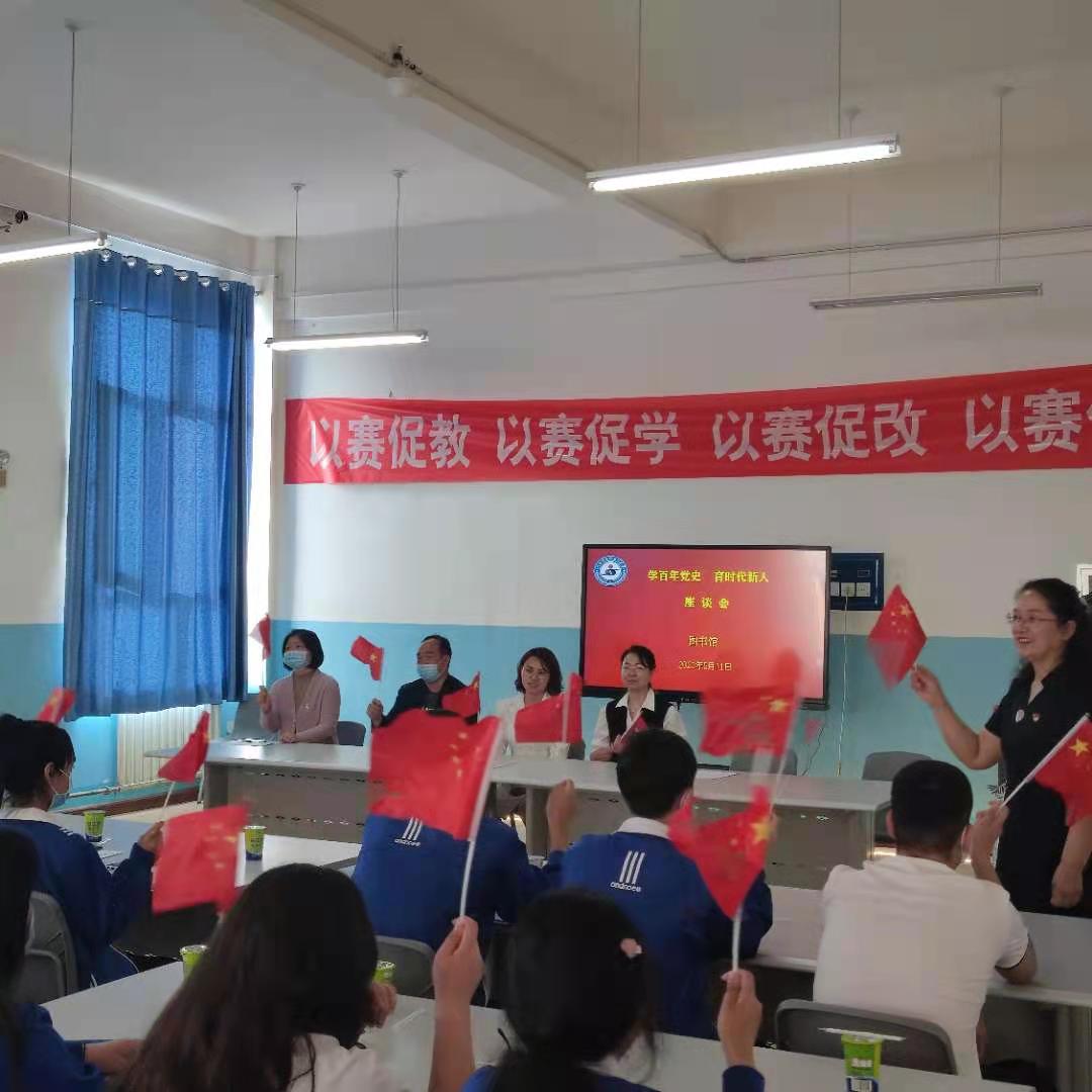 座谈会在党史故事《红船故事》中拉开序幕。座谈会上,为获得师市教育系统新时代好少年“劳动美”主题读书活动主题征文--劳动创造美好生活,一等奖的19计应4班米尔拉提颁奖,聆听了米尔拉提同学分享他的征文故事,同学们深受启发。学生代表栾雪晶和贾志豪进行了热情的发言,栾雪晶同学回顾了作为党史故事讲述者的感想,从活动方案的策划,活动过程的实施,每一个过程都是需要考虑得当和积极参与,通过自己参与,带动更多同学参与到活动中来。贾志豪同学在发言中说道: 我们作为新时代的青年团员应该要以史为鉴、以史为师、以史为镜,深刻领悟党史中的真理力量、实践力量、人格力量,用行动践行使命、用脚步自觉砥砺。最后,马鑫、曲占川、严欣、李思雨四位同学为我们带来了诵读作品《英雄》。 座谈会最后,参会师生手举国旗唱着《没有共产党 就没有新中国》中结束。