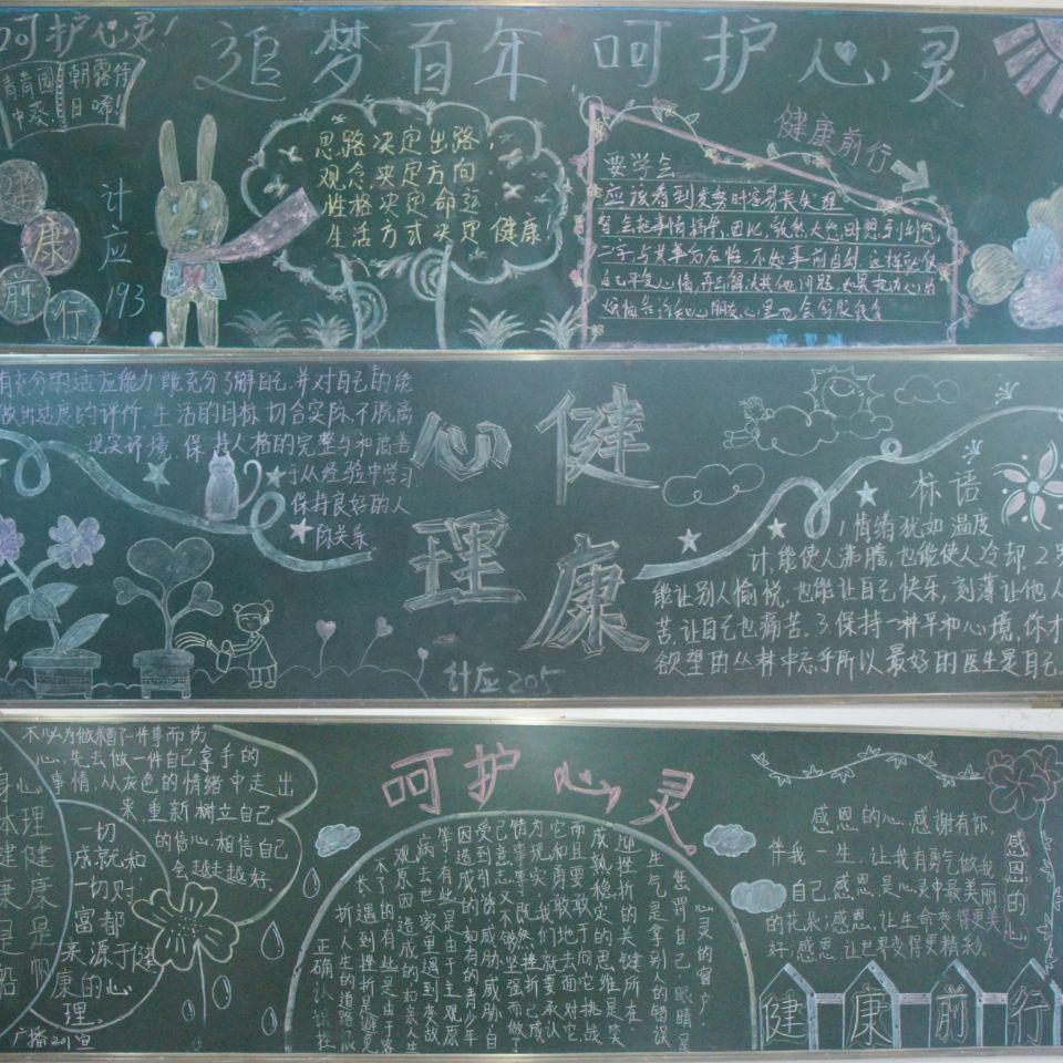 本次活动利用分院展板,及各班绘制黑板报等方式,以设计色彩鲜明、内容丰富、字迹工整的作品,全面展示了信息学子对掌握心理健康知识及自我调适方法,进一步增强心理调适能力。同时,分院积极参与了由李蓉老师主讲的心理健康线上、线下专题讲座,学生们学习了很多自我调适的方式方法,进一步增强心理调适能力。在活动期间,各班利用晚自习的时间,开展了多次以“逐梦百年,呵护心灵,健康前行”为主题的心理健康班会,通过观看心理健康视频,和电影赏析等活动,培养学生心理保健意识。班会上通过老师通过一对一、多对一心理辅导活动,对学生进行精准心理帮扶工作。同学们纷纷表示要加强自身心理健康培养,疏通心理障碍,提高心理素质。
