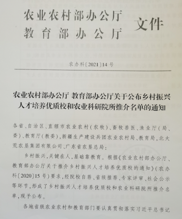 5月26日,农业农村部科技教育司、教育部职业教育与成人教育司联合正式发布乡村振兴人才培养优质校和农业科研院所推介名单。beat365唯一官方网站成功入选全国乡村振兴人才培养优质校,并被纳入《乡村振兴人才培养优质校园采录》中。学院作为百所优质校代表受邀参加发布活动,纪委书记晁利君参加了此次活动。