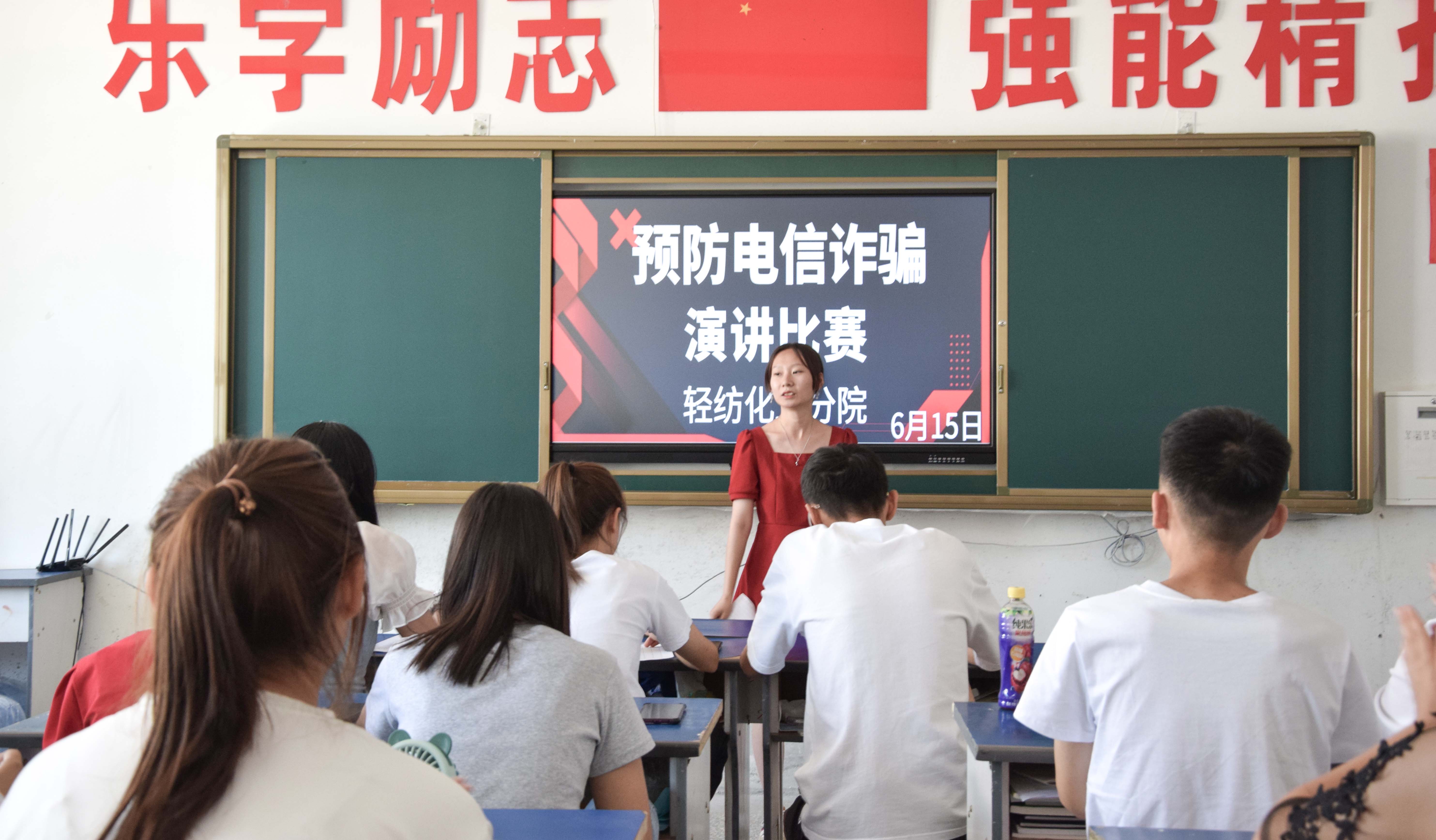 6月12日,轻纺化工分院在校的18个班级,利用晚自习时间开展“预防电信诈骗”主题班会,各班班长通过PPT详细介绍诈骗相关含义、展示诈骗手段、分析经典案例,并播放防范电信网络诈骗视频。让同学们对电信诈骗的形式有了更深的了解,提高了同学们的警惕性。