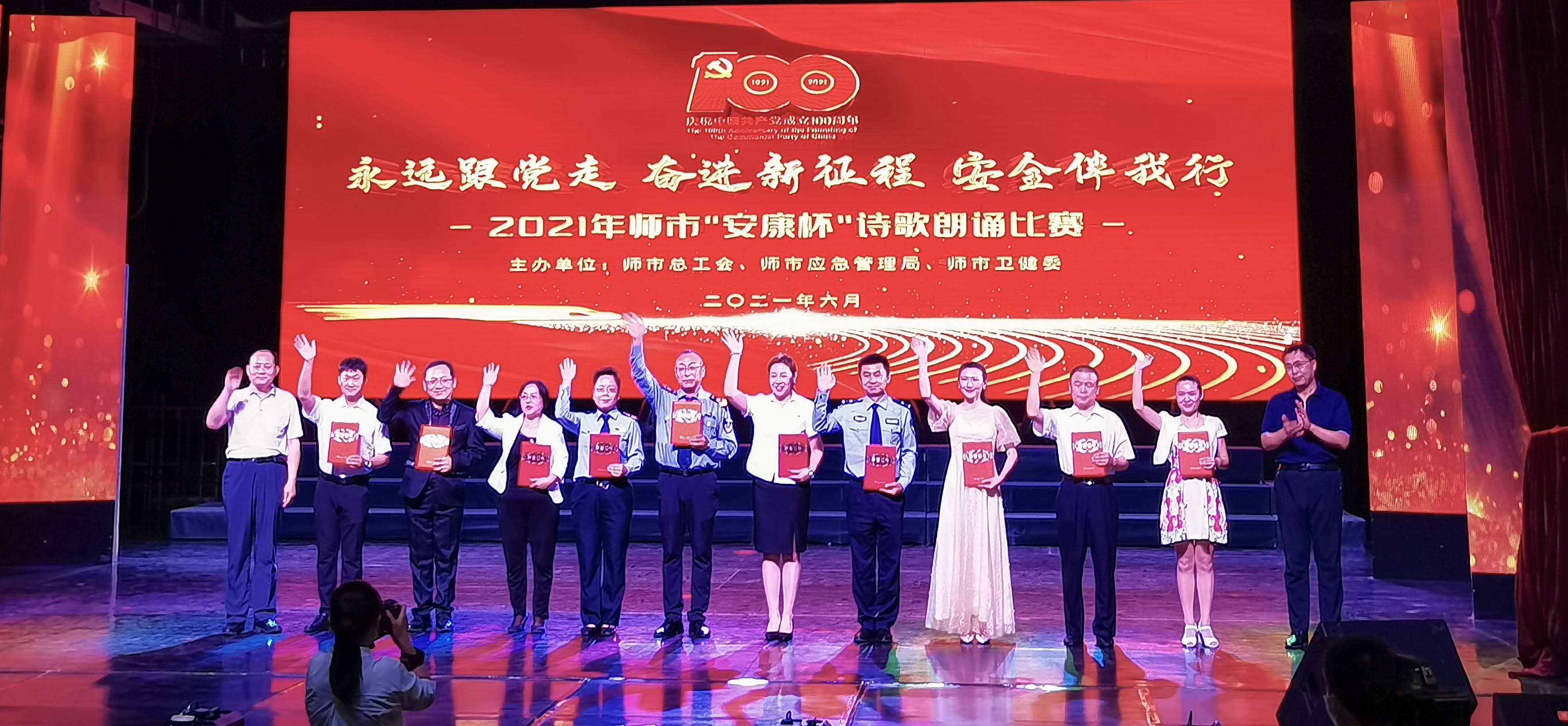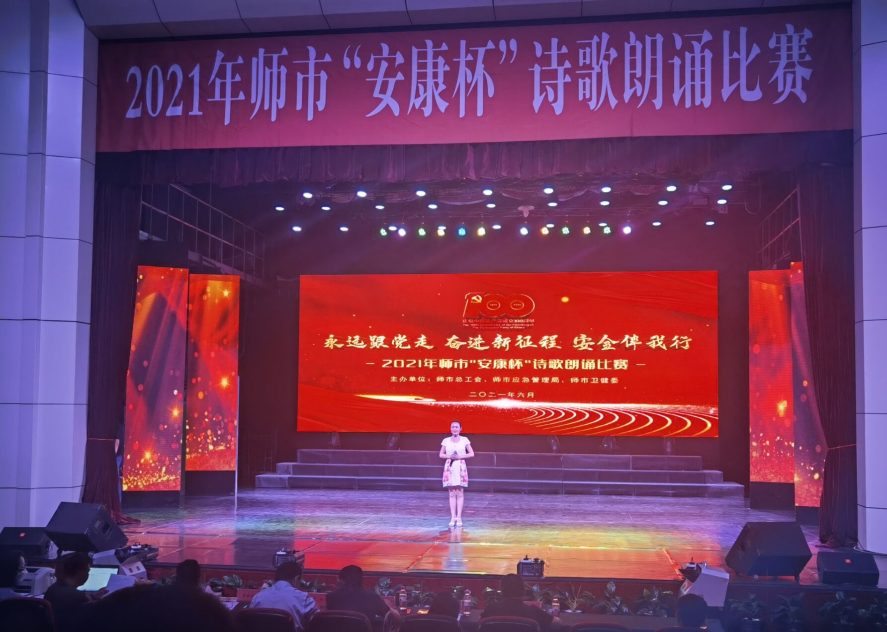 为宣传安全生产政策法规,传播安康知识,弘扬安全文化,提高职工的安康意识,教育职工珍爱生命、遵章守纪、远离事故。2021年6月22日,由师市总工会、应急管理局和师市卫健委联合举办的,以“永远跟党走 奋进新征程 安全伴我行”为主题的2021年师市“安康杯”诗歌朗诵比赛在工人文化宫举行。