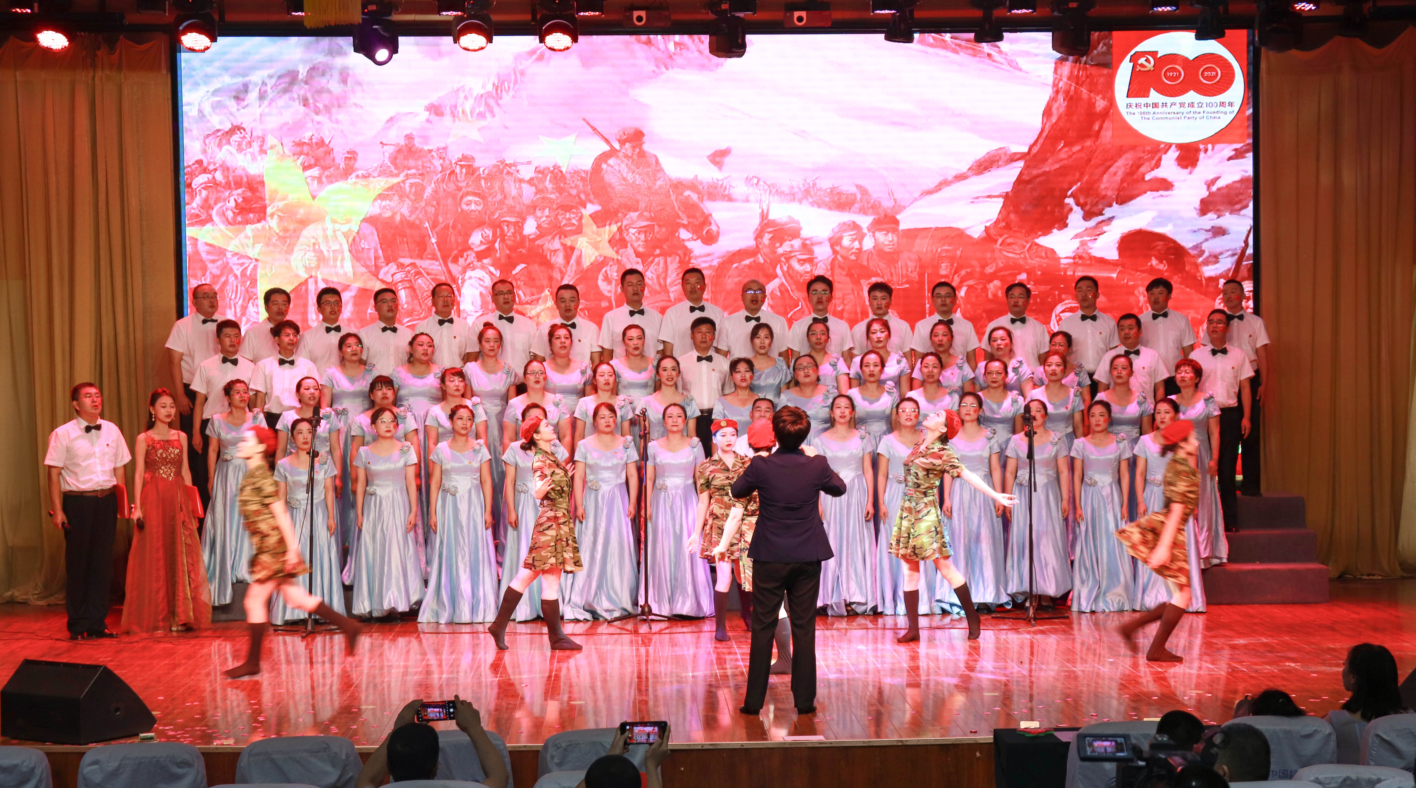为庆祝中国共产党成立100 周年,深情回顾党的奋斗历史,热情讴歌党的光辉业绩,继承和发扬党的光荣传统和优良作风,2021年6月29日,beat365唯一官方网站隆重举办“唱红歌 温党史 守初心--永远跟党走 礼献新时代”教职工红歌合唱比赛。学院党委书记史文革、院长林炯,副院长、工会主席耿荣、副院长李卫、副院长张涛及400余名教职工参加此次活动。