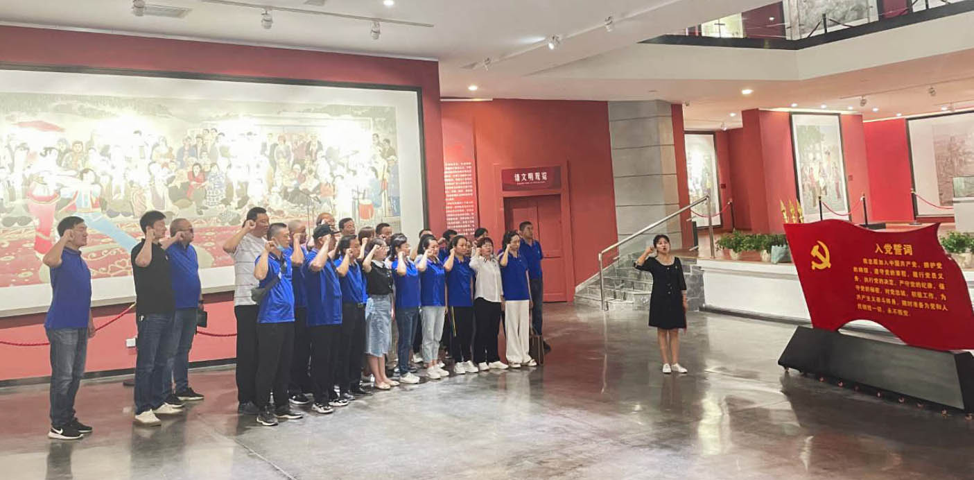 在参观过程中,全体党员教师组织传唱红色歌曲《没有共产党就没有新中国》,歌颂我们党100年来的非凡成就。当全体党员在入党誓词前驻足时,全体党员自发的列好队伍,在学院副院长耿荣同志领誓下,重温入党誓词。参观结束后,两个党组织又分别开展了讲党课活动,真正将党性教育做到“入心、入脑、入深、入实”。
