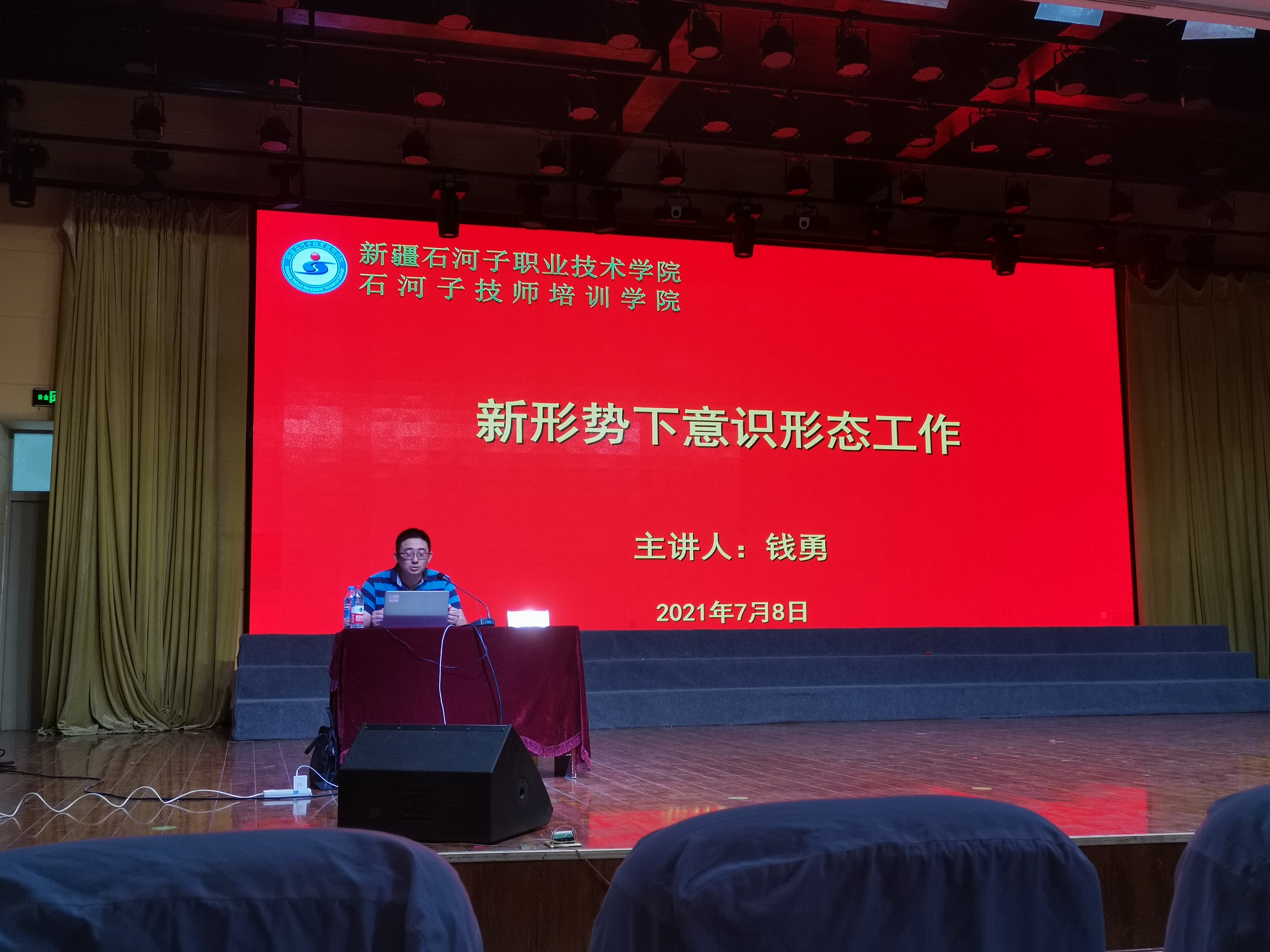 下午, 师市党委宣传部政工职评办一级科员钱勇作新形势下意识形态工作专题讲座。本次讲座进一步增强了广大教职工对意识形态工作极端重要性的认识,为提升全校意识形态工作管理水平奠定了理论支撑。