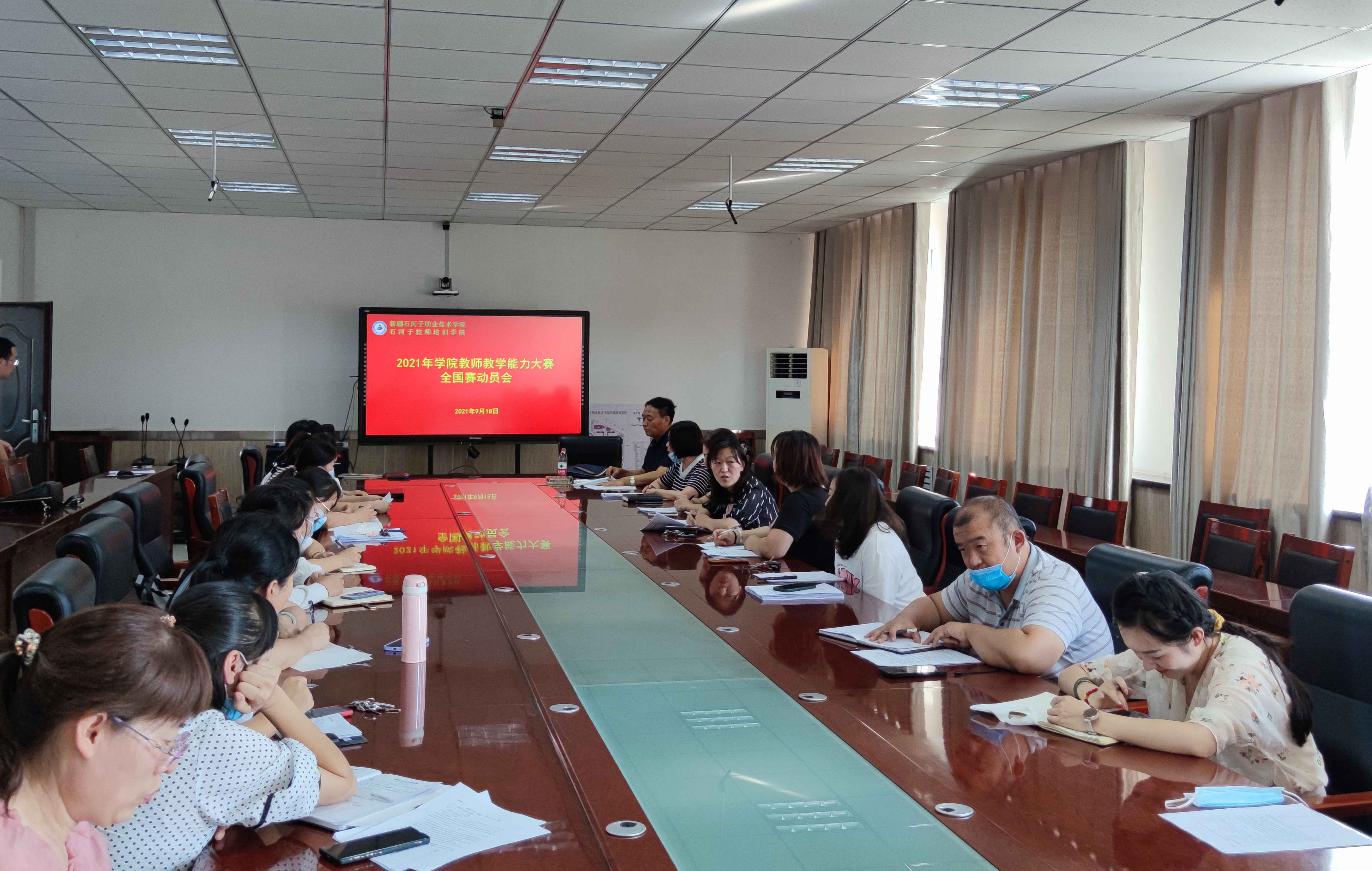为推进2021年职业院校教师教学能力全国赛的参赛工作,9月18日下午,在培训楼四楼会议室召开赛前动员会。会议由科研处处长胡英主持,学院党委书记史文革、参赛团队负责人及全体团队成员参加了会议。