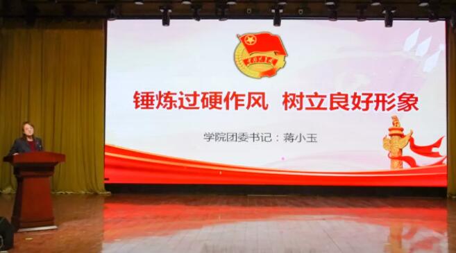 开班仪式后,学院团委书记蒋小玉为广大团学干部进行了“锤炼过硬作风 树立良好形象”的开班第一课,带领学生学习了《学生会(研究生会)干部自律公约》《关于深入落实<深化学校共青团改革的若干措施>的工作提示》等内容。