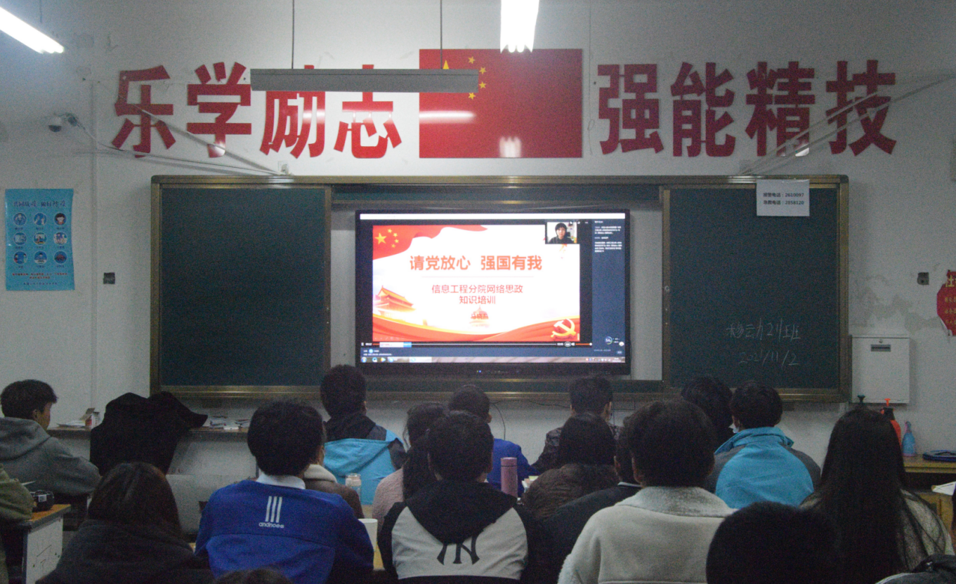 为深入贯彻落实习近平总书记关于教育的重要论述,特别是在思想政治理论课教师座谈会上的重要讲话精神,坚持不懈用习近平新时代中国特色社会主义思想铸魂育人。11月2日,信息工程分院全体学生线上参加“请党放心 强国有我”主题教育活动。