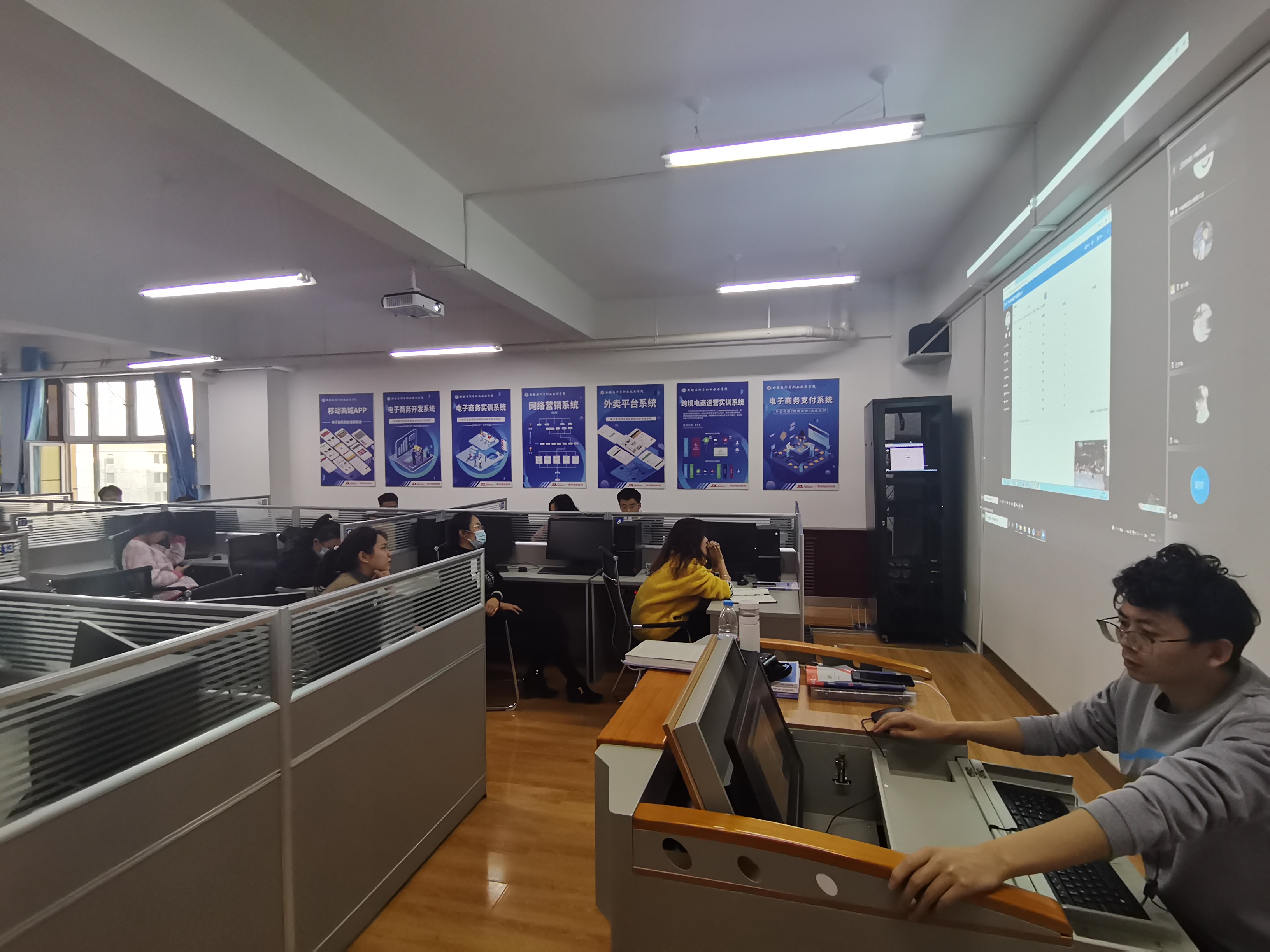 为推动我院电子商务专业建设发展,提高电商相关专业教师技能水平和综合素质,提高学生电商操作技能,旅游与经济管理分院于2021年11月2日18点在二期实训楼电子商务综合实训室进行了TB电子商务推广实训系统教师培训,分院相关专业教师及电商专业学生参加了此次培训。