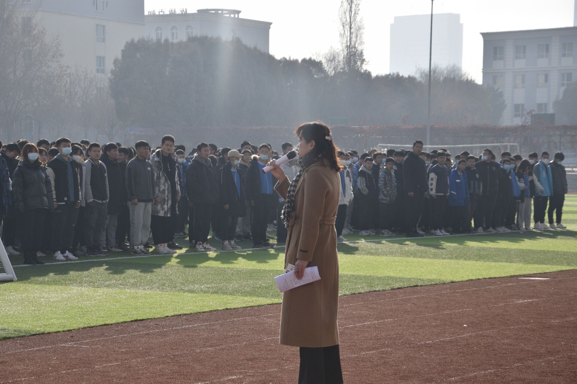 马彩梅副院长对本次疏散演练进行了现场点评,总结说此次逃生演练总体来说是一次成功的演练,做到了紧张有序,有条不紊,没有发生任何互相推挤、踩踏事故,但也指出演练过程中存在的问题,同学们在思想意识上还缺乏认识,逃生过程中自我保护措施不到位,并指示将此次应急疏散演练纳入常规安全教育活动,不定期开展,不断强化同学们在遇到危险时的自我保护技能,将安全教育落到了实处。