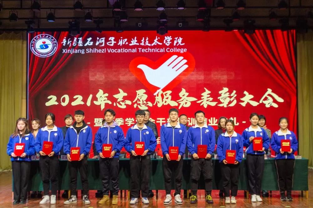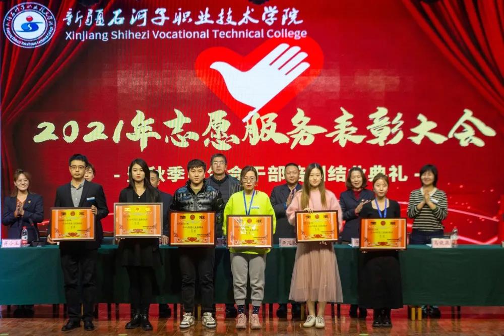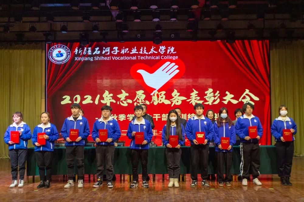 2021年,学院志愿服务时长超八万小时,青年志愿者积极参加自治区职业技能大赛、兵团职业教育活动周、兵团大学生暑期三下乡、服务社区、学院各类考试、大型赛会、疫情防控等各项志愿服务活动,广大志愿者以团结协作的精神、真诚美好的微笑、周到细致的服务,为学院赢得了荣誉,展示了学院学子的良好形象,受到了社会各界的广泛好评,涌现出一批优秀的青年志愿者和志愿服务先进集体。大会对优秀青年志愿者和志愿服务先进集体进行了表彰。