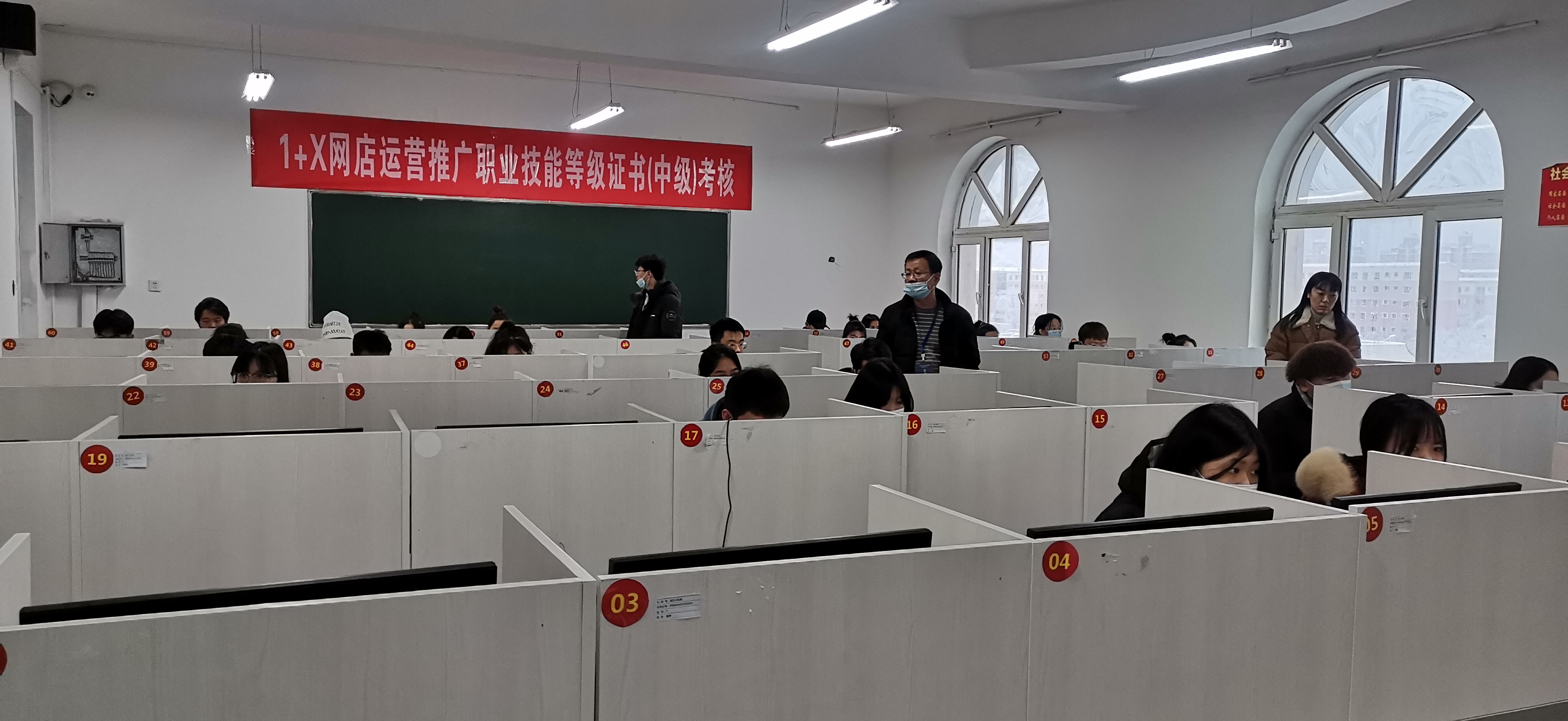 为贯彻落实《国家职业教育改革实施方案》和《职业技能提升行动方案(2019-2021)》等文件精神,深入推进1+X证书制度试点工作,经贸分院于2021年12月11日成功举办了1+X网店运营推广职业技能等级证书(中级)考核的认证考试,共61名20级电子商务技术专业的学生参加了考试,到考率100%。本次考证得到了学院的高度重视,教务处副处长徐海霞、经贸分院院长栗劲松莅临现场指导考试工作,相关考务工作人员严格按照工作手册执行考务工作,秉持着认真严谨的原则,考试过程组织得当,秩序井然,保证了本次考试的顺利完成。