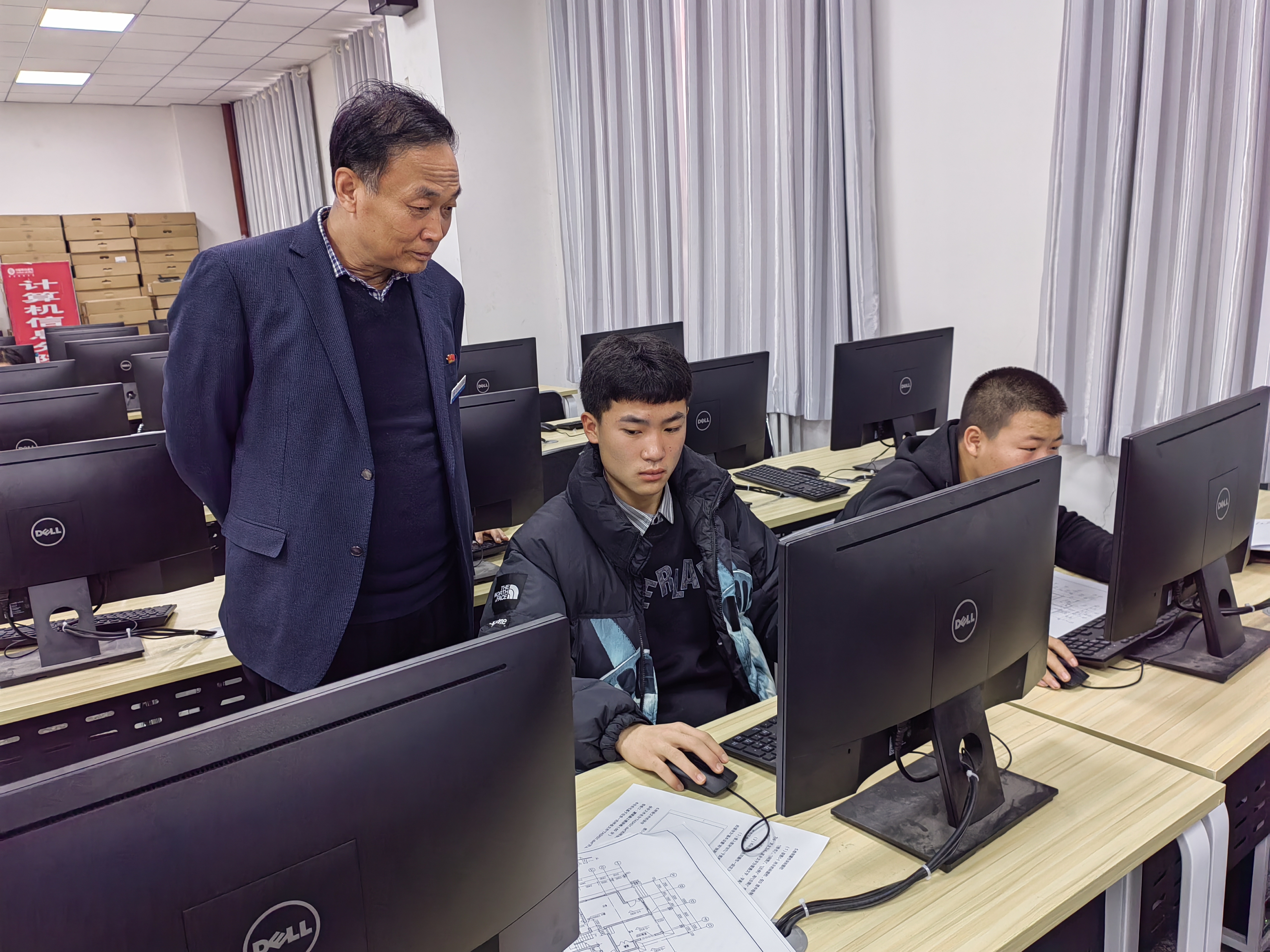 2021年12月15日,水建分院按照兵团教育局统一要求,组织开展五年一贯制CAD抽测工作,水建分院10名学生参加考试。学院党委书记史文革、院长林炯莅临考场指导工作,水建分院院长弓中伟、副院长张婷等陪同检查指导。水建分院高度重视五年一贯制学生的培养工作,历年来在兵团组织的抽测工作名列前茅,今年选派2名专业课教师给学生开展全方位的培训,历时十余天的培训工作,学生的CAD绘图水平得到显著提高。学院领导要求提高教学水平是学院发展的生命线,高质量的人才培养才能更好为区域经济发展助力,专业教师要不断提高专业素养,打造兵团建筑专业职业教育高地。