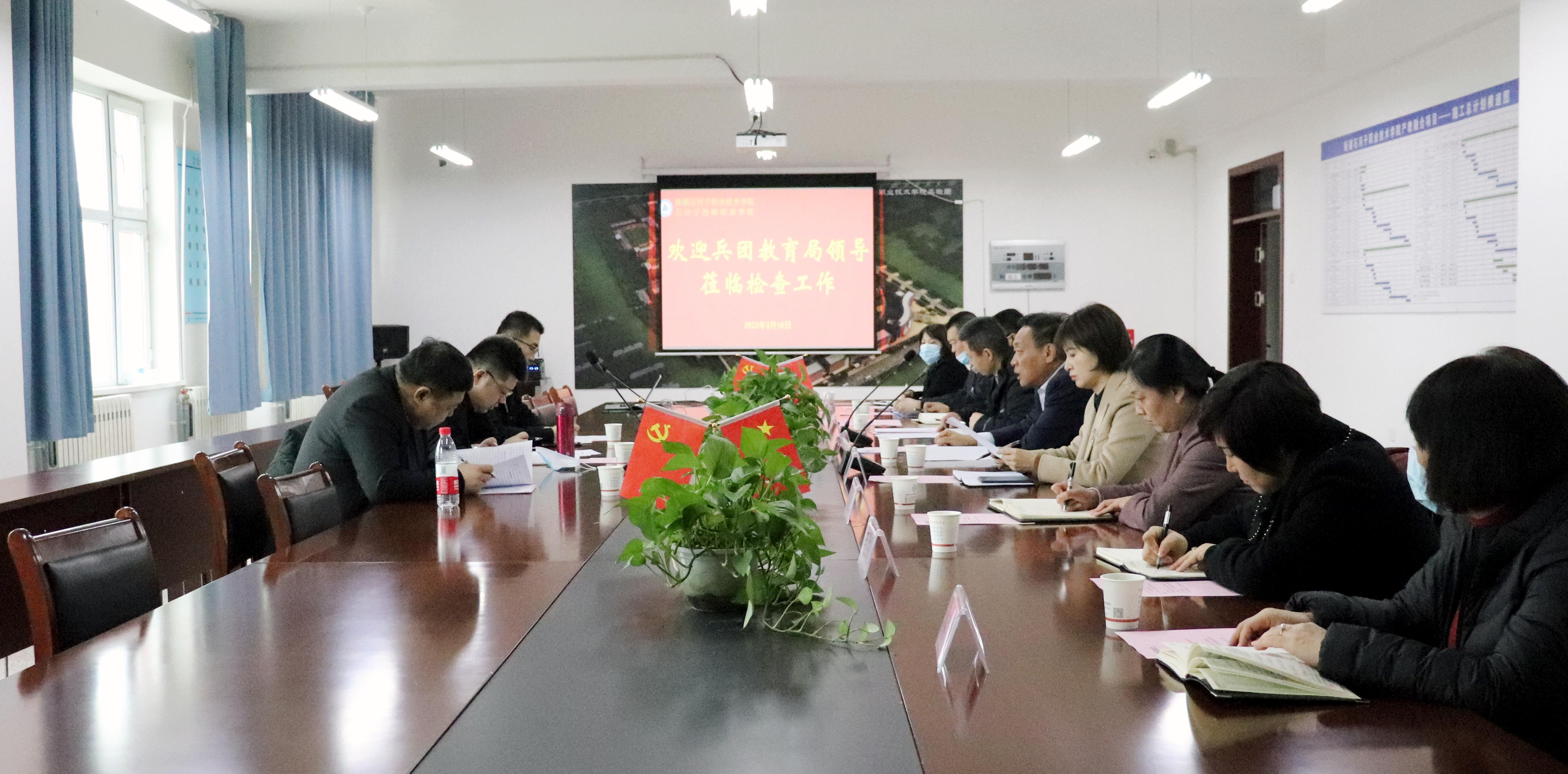 八师教育局党委书记、局长肖晨曦,副局长王志祥,学院党委书记史文革、纪委书记晁利君及相关部门负责人陪同调研。