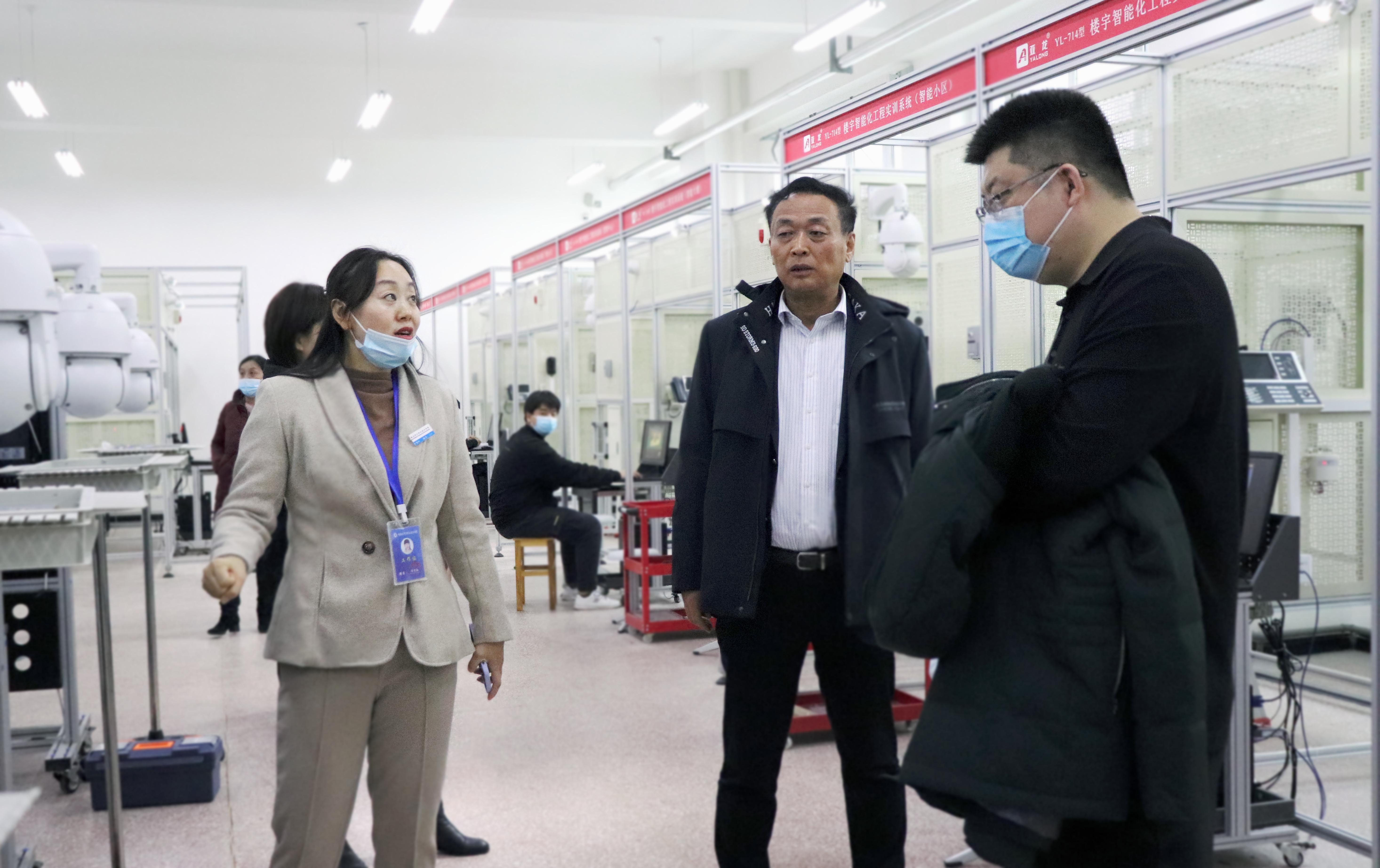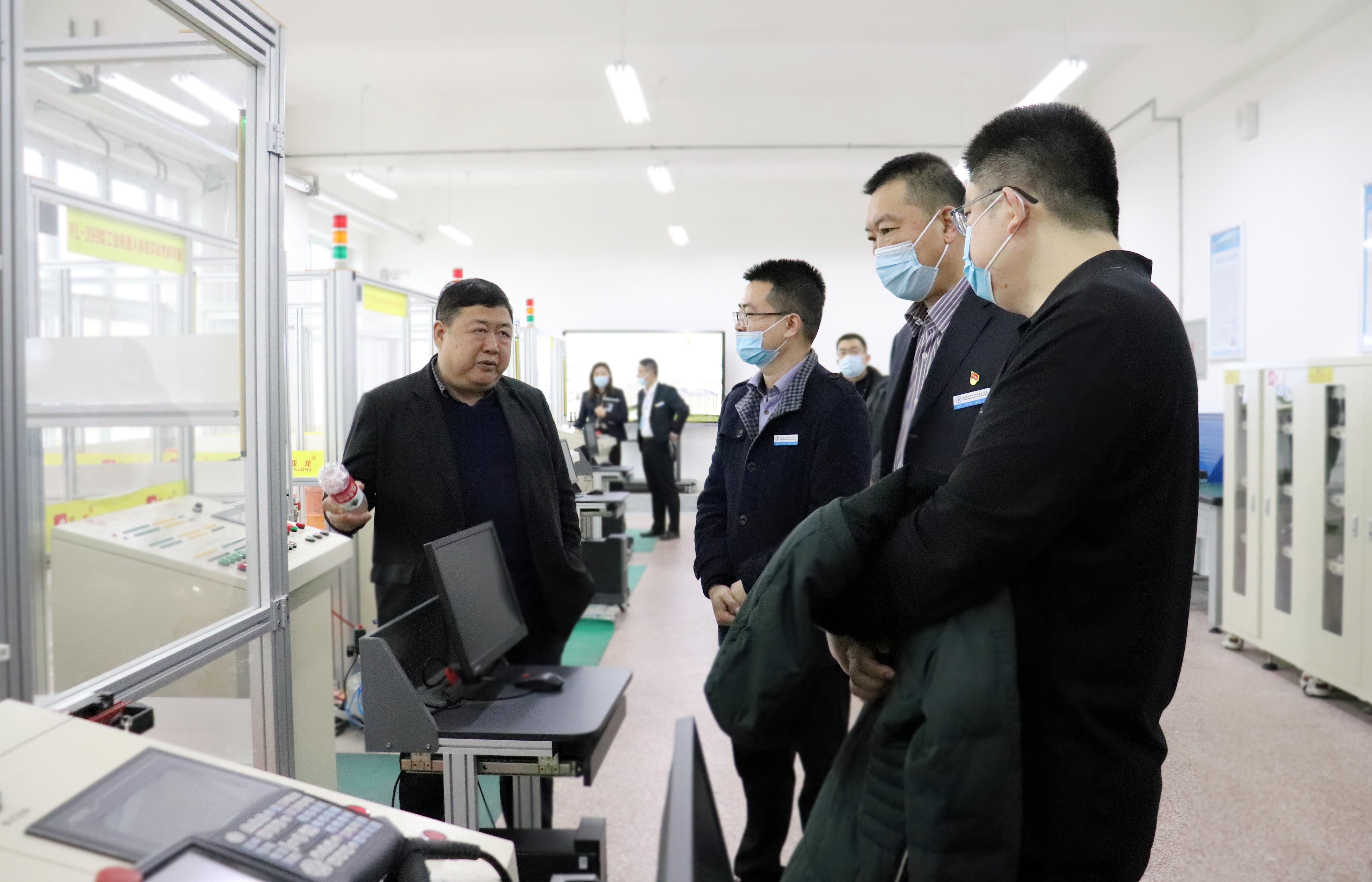 祁副局长一行首先参观了学院的焊接实训室、无人机实训室、工业机器人实训室等,专业负责人向领导汇报了实训室建设、实训室功能及学生实训课程授课情况。领导一行充分肯定了学院在实训基地建设上做出的成绩,同时也指出,实训基地的建成顺应了社会发展,希望学院充分利用好实训基地,为区域培养出更多复合型技术技能人才。