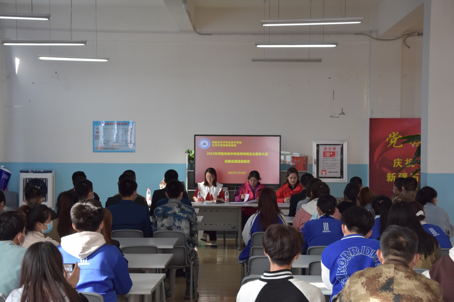 下午六点,比赛首先从经典名篇即兴诵读拉开了帷幕。来自高职分院的41名选手进行了精彩展示。考试题目由评委老师从31篇古诗词中随机抽取,参赛选手按捺住激动紧张的心情,认真聆听老师给出的题目,积极抢答。在比赛总结时,评委老师讲到:“读书是对人的一种升华,读经典名篇更是能让我们对中华优秀传统文化有更深的感悟,在触景生情时,能吟出几句应景的词句来。”