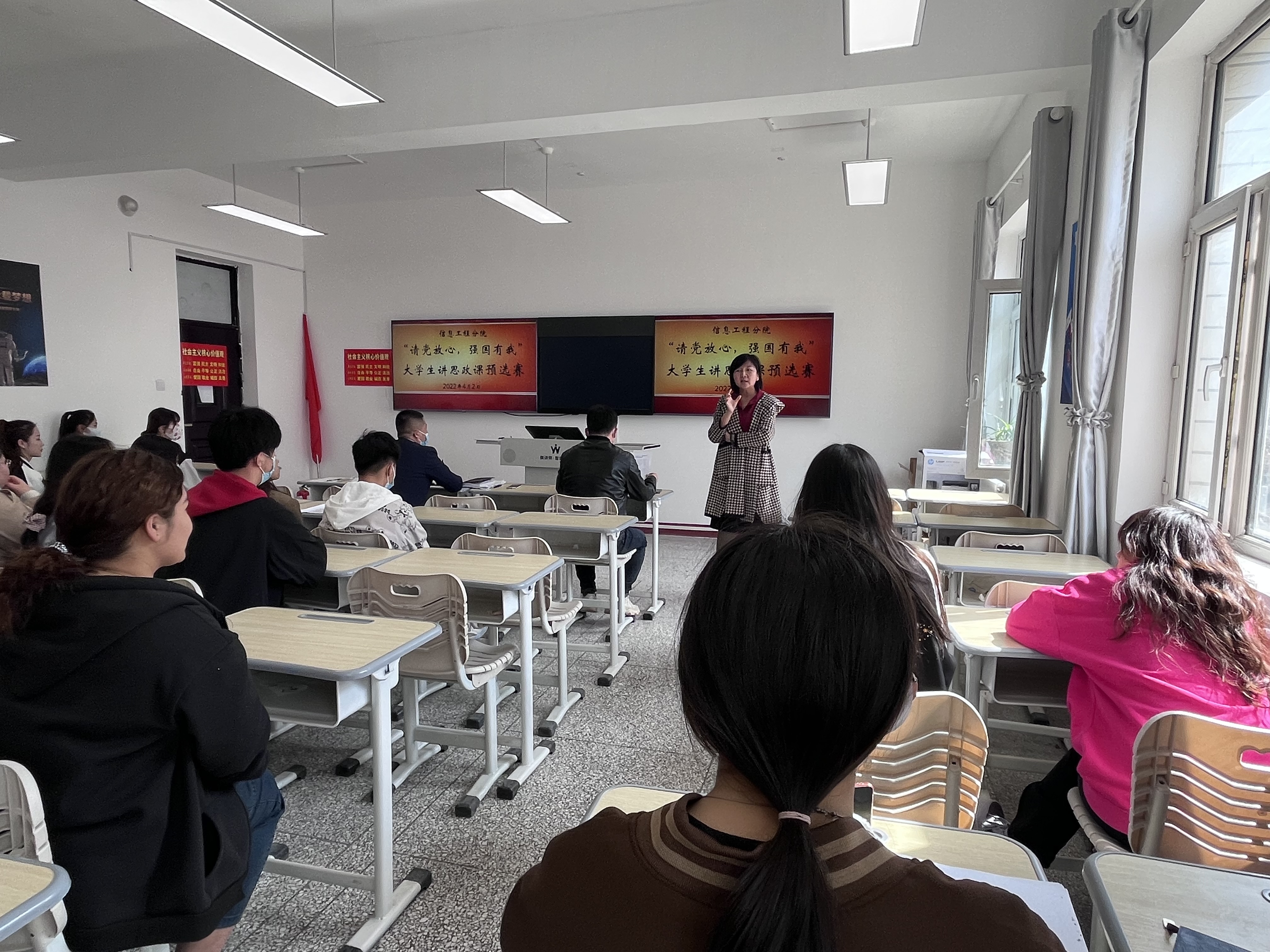 为深入实施“新时代学校思想政治理论课改革创新先行试点”专项工作,配合学院将即将举办的“请党放心,强国有我”首届学生讲思政课公开课展示活动,2022年4月2日上午,信息工程分院举行大学生讲思政课分院预选赛。