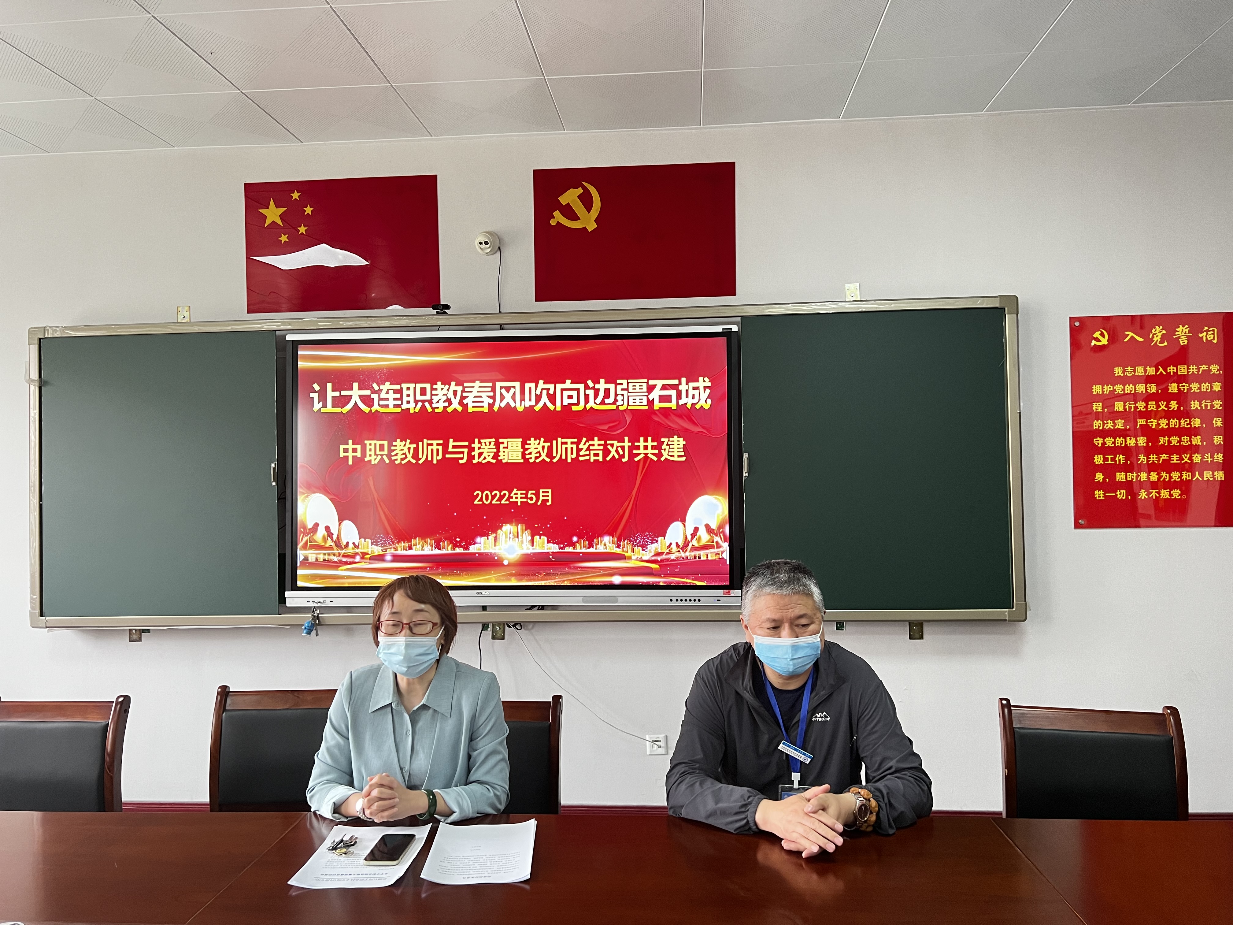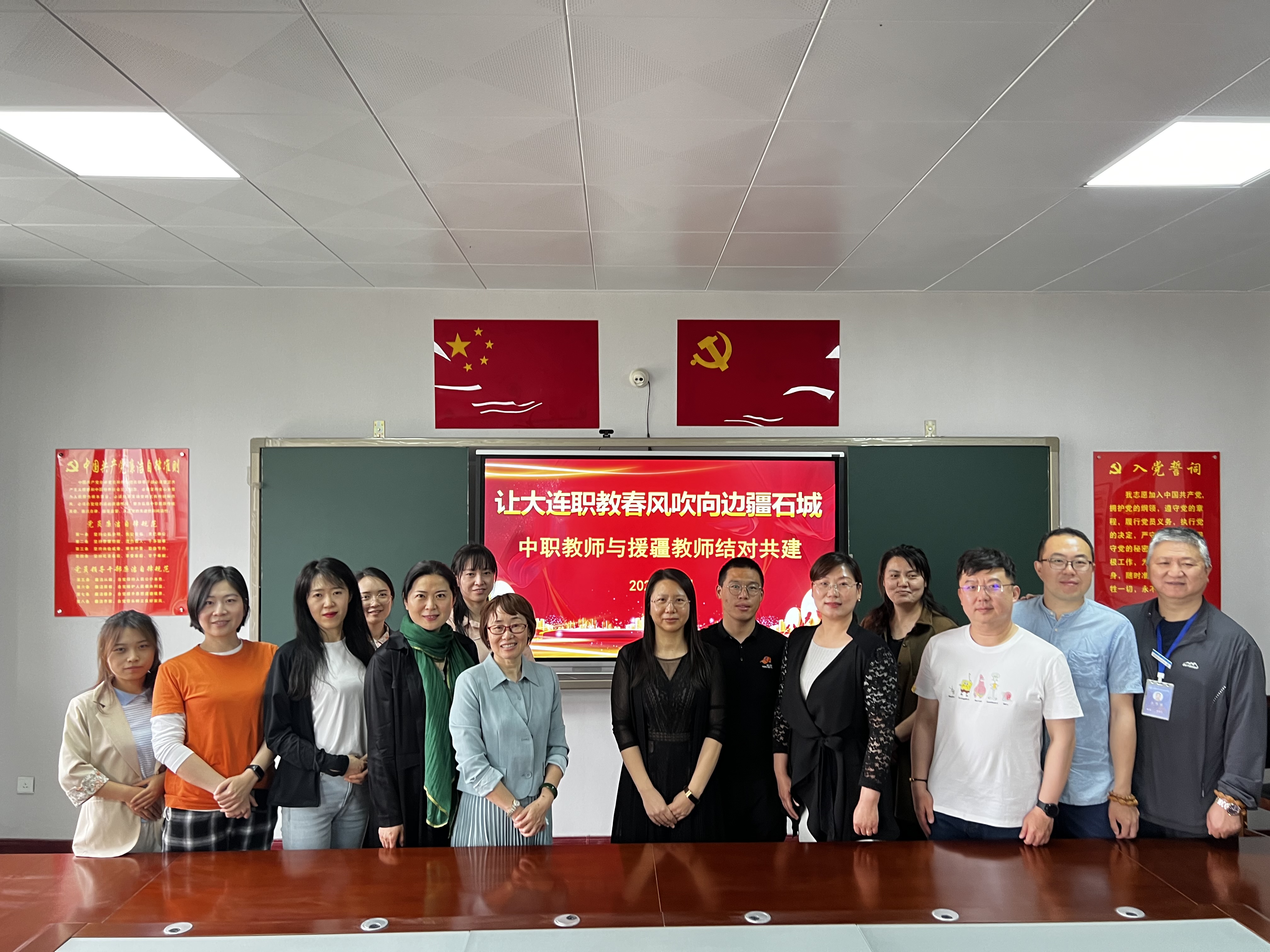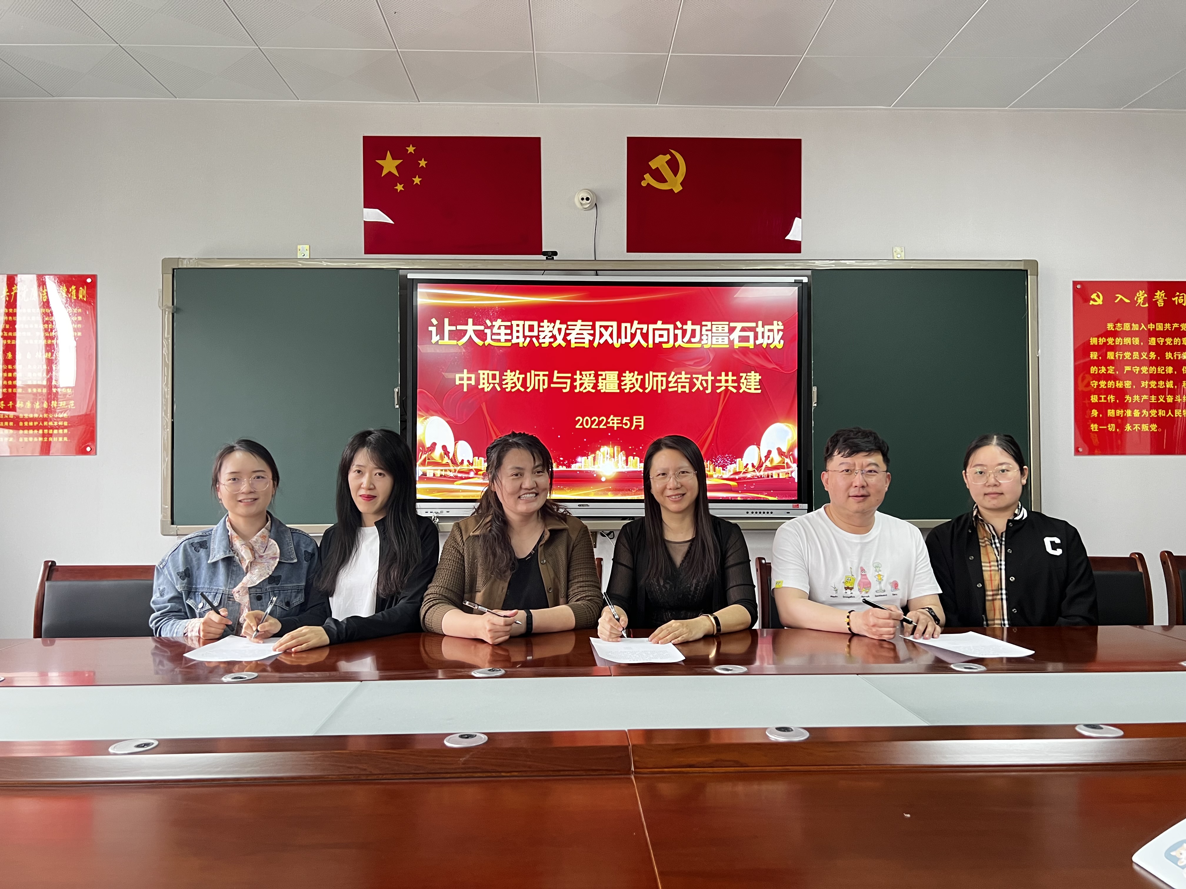 (苗梦雪报道)为加快青年教师的成长步伐,充分发挥大连援疆团队教师传、帮、带的作用,提高青年教师专业队伍整体水平,建立有利于教师队伍快速成长的培养机制。5月12日下午,中职教师与援疆教师结对活动在德润楼举行。