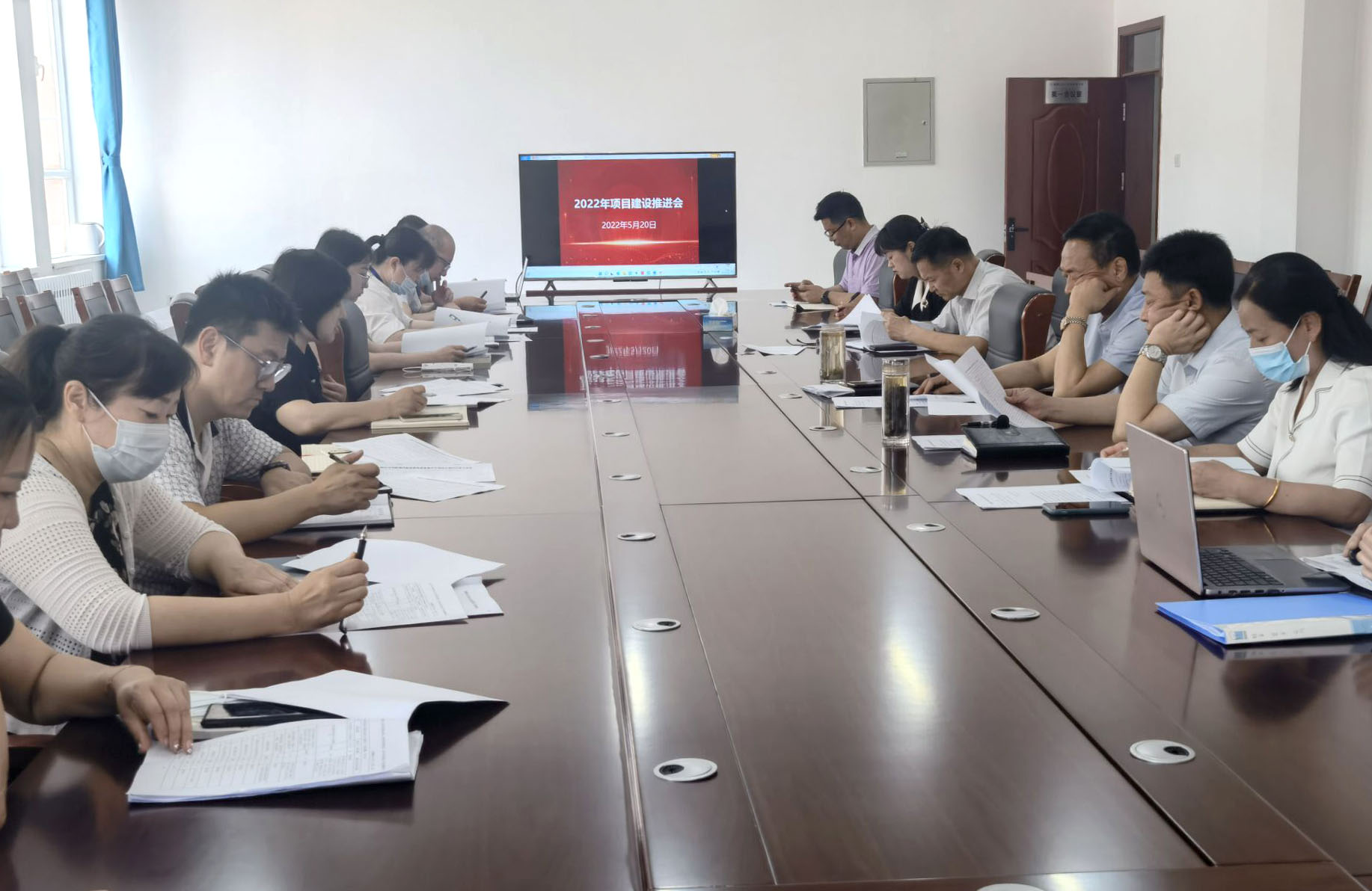 (王丽报道)为进一步推进学院项目高质量建设工作,5月20日上午,学院召开2022年项目建设推进会。学院党委书记史文革、学院院长林炯、学院副院长李卫、纪委书记晁利君、学院副院长马彩梅,相关部门负责人及各项目负责人参加推进会。职教中心主任毛洪霞主持会议。
