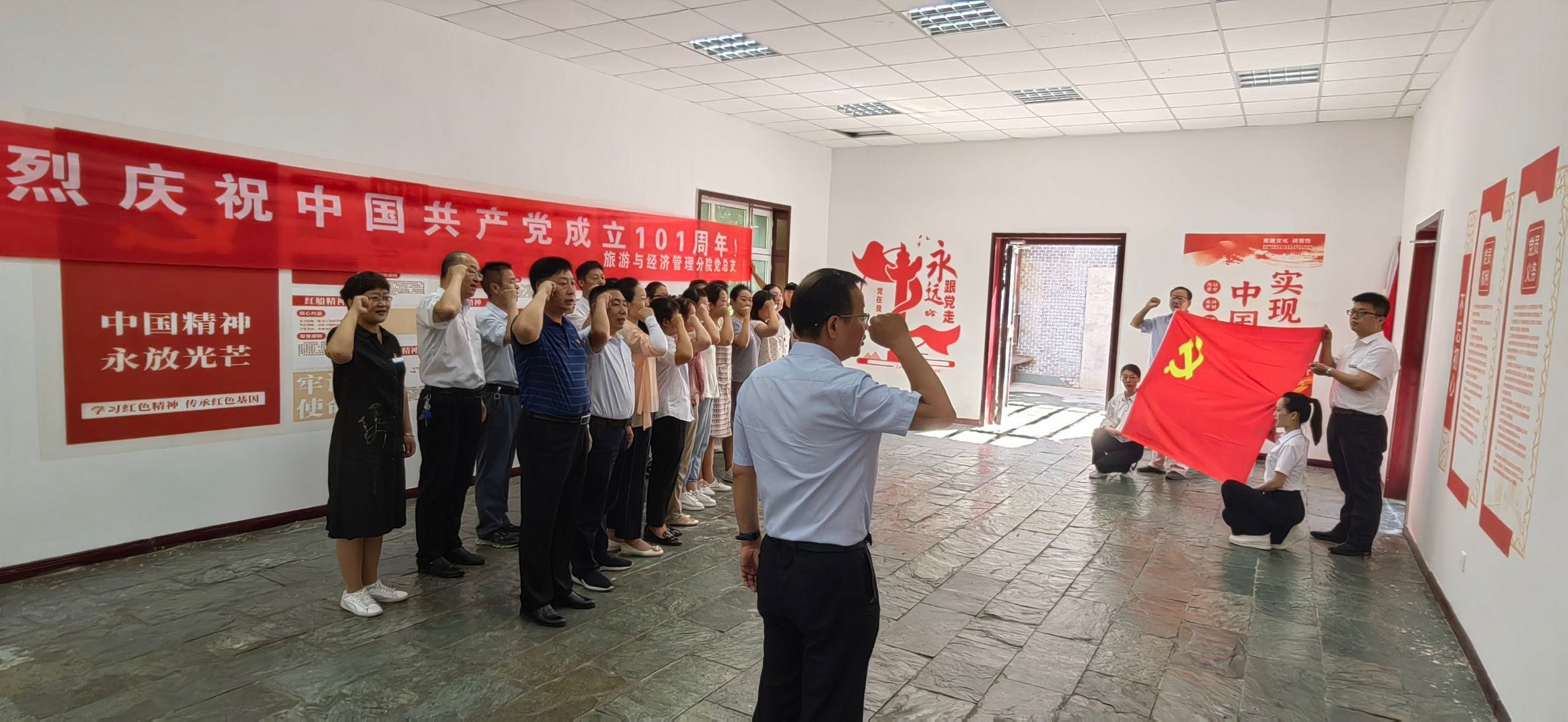 (杨静静 赵倩倩报道)6月30日上午,旅游与经济管理分院党总支与成教分院直属党支部组织党员们来到小李庄研学基地联合开展了“党旗映天山”为主题的党日活动。学院院长林炯作为普通党员参加了此次党日活动。