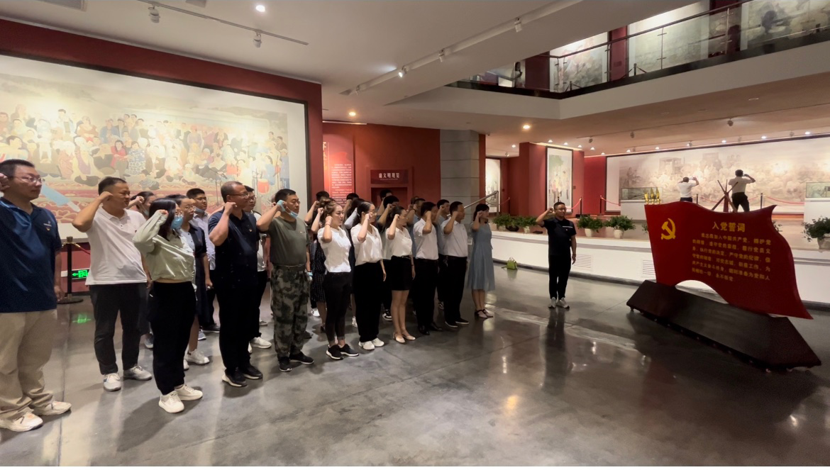 进入展厅,从一份党费证的故事到一盒药的故事再到一群老兵的故事......一张张珍贵的历史图片,将大家带回那段艰苦的垦荒岁月,感受老一辈军垦人艰苦奋斗、无私奉献的精神。参观完毕,所有党员怀着激动的心情,在展厅重温入党誓词,在尹君同志的带领下,全体党员一起高举右手,再次庄严宣誓:“我志愿加入中国共产党……随时准备为党和人民牺牲一切,永不叛党。” 短短八十字,字字铿锵,句句深意!入党誓词镌刻着中国共产党人百年来的初心与使命,也验证着每个共产党员的坚强意志和崇高品格。